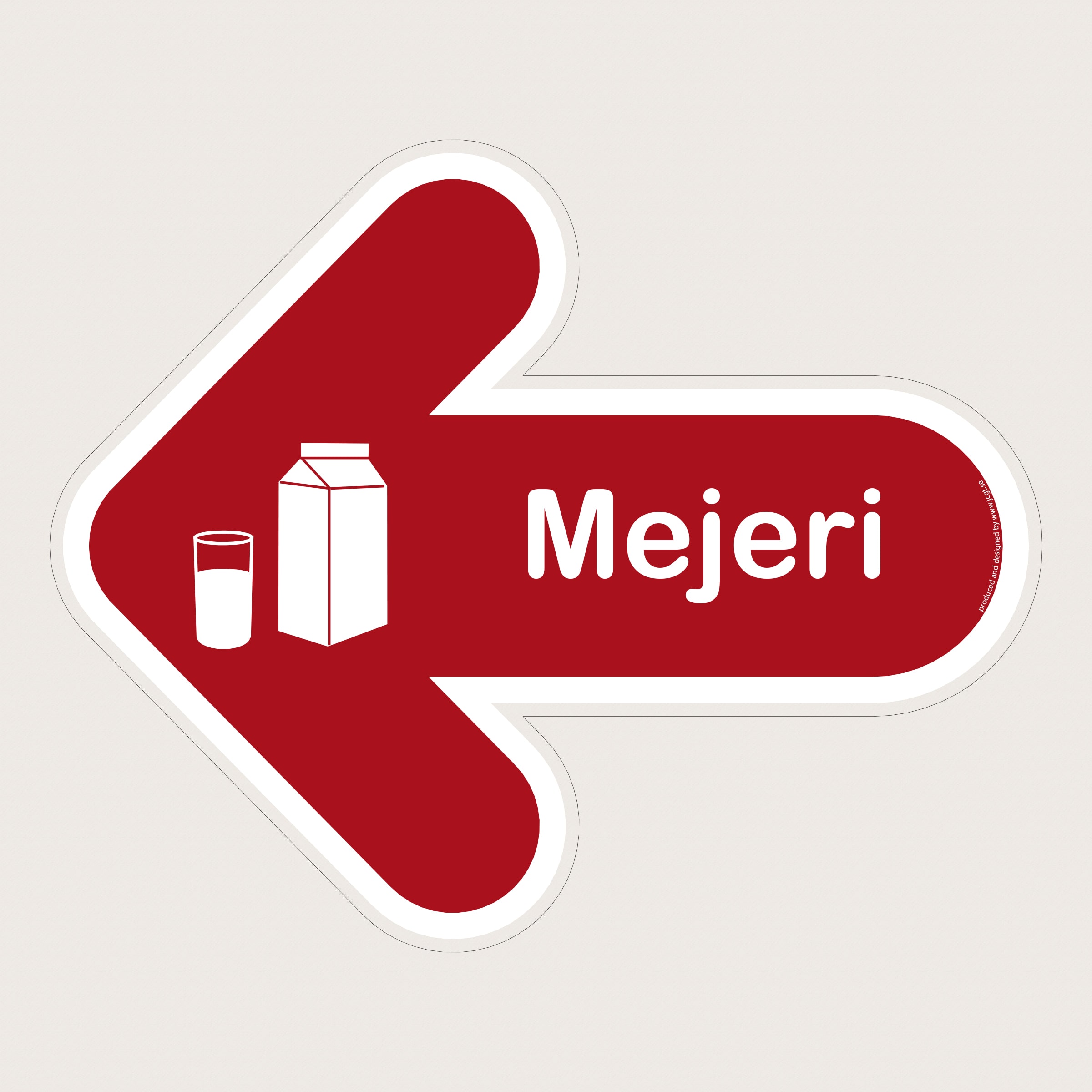 En golvpil med text och symbol för Mejeri. Pekar era kunder rätt.