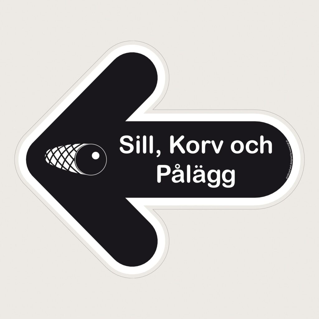 En golvpil med text och symbol för Sill, Korv & Pålägg. Pekar era kunder rätt.
