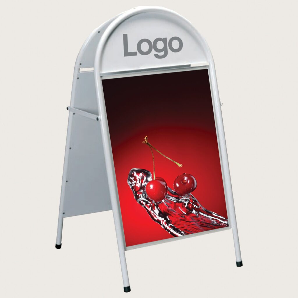 Gatuprataren / Trottoarprataren Windsign är en storsäljare bland A-Ställen är försedd med ett magnetfönster för att du enkelt skall kunna byta ut ditt motiv. En halvmåneformad toppskylt är perfekt för din logga. Logga ingår ej i produkten.