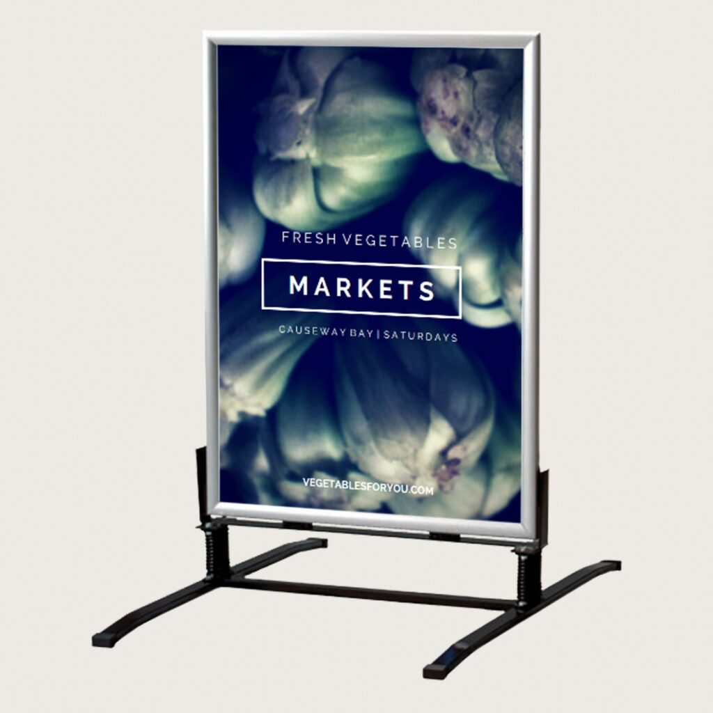 En trottoarpratare för affischer eller posters i storleken 50 x 70 cm