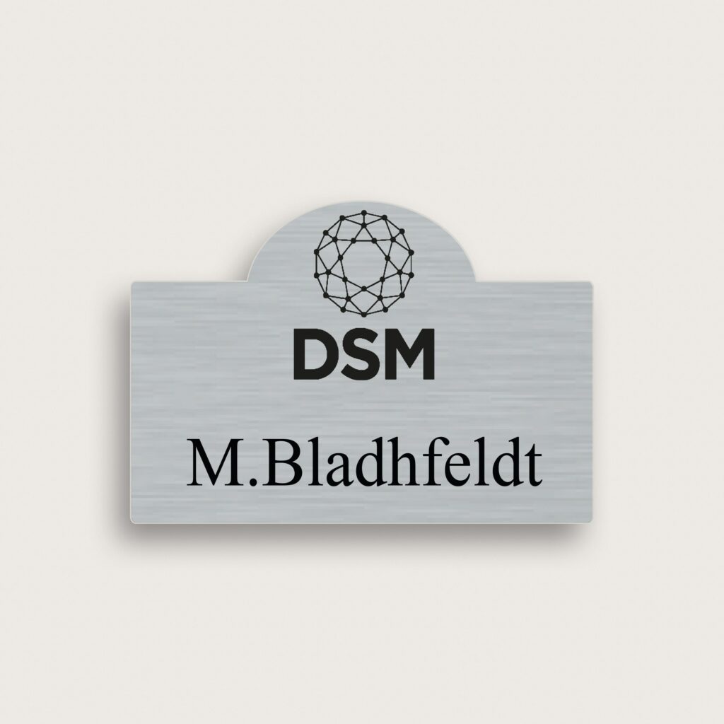 Namnskylt Rektangel med halvcirkel i Aluminium 60 x 40 mm som snyggt och prydligt visar vem ni är och vad ni gör
