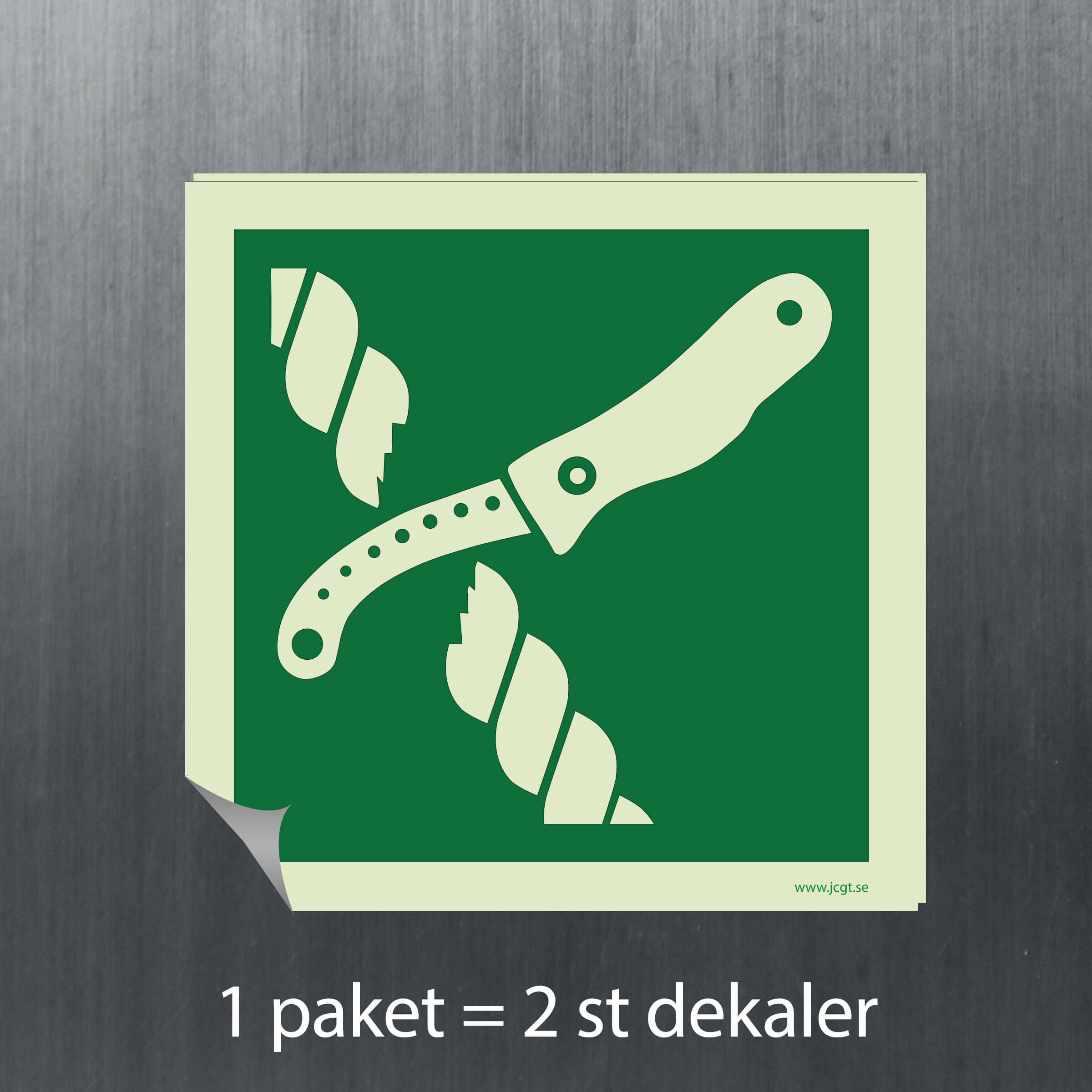 Nödskylt Livbåtskniv. Efterlysande färger, välj mellan olika material och storlekar.