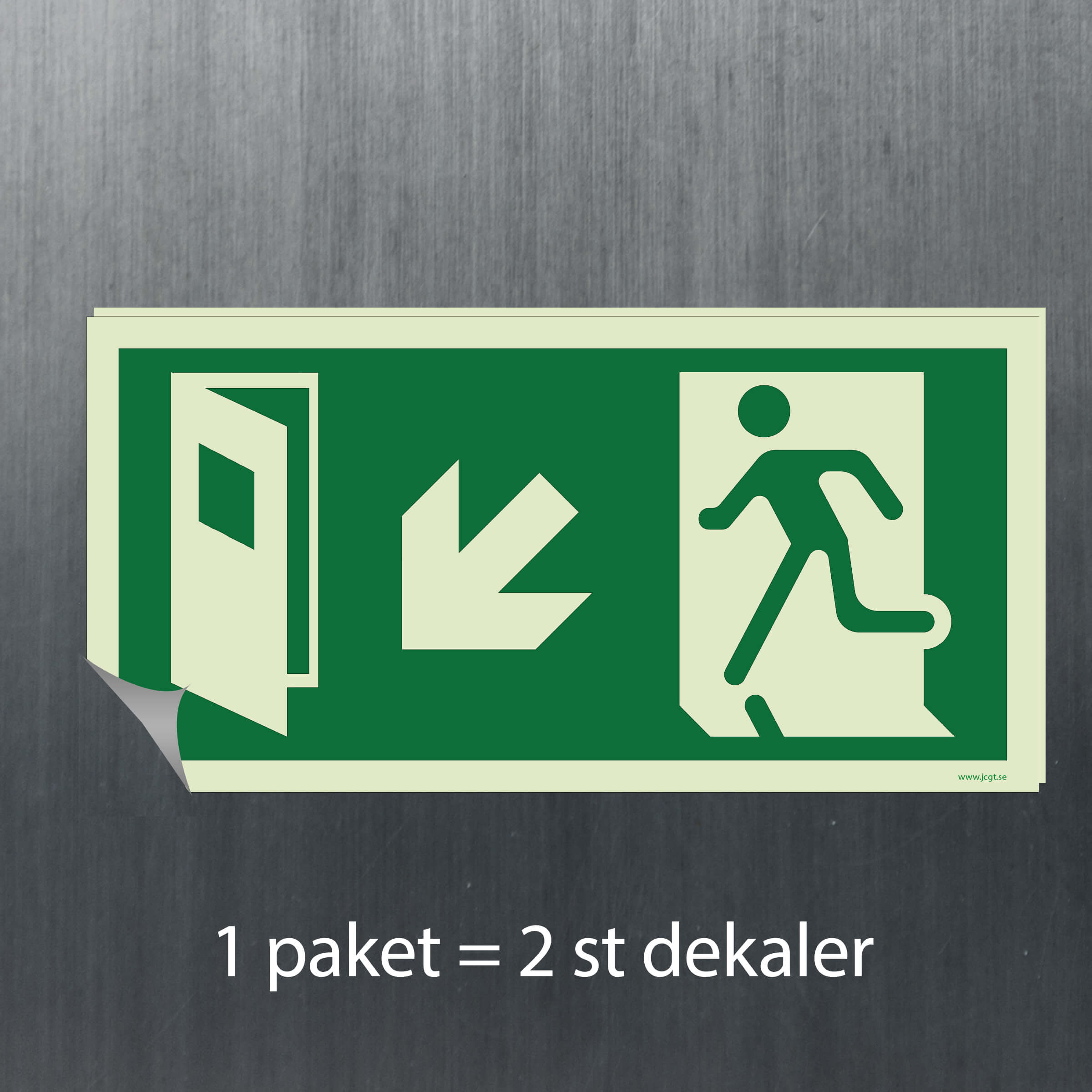 En Utrymningsskylt Dörr ner till vänster som pekar ut vägen till den närmsta nödutgången.
