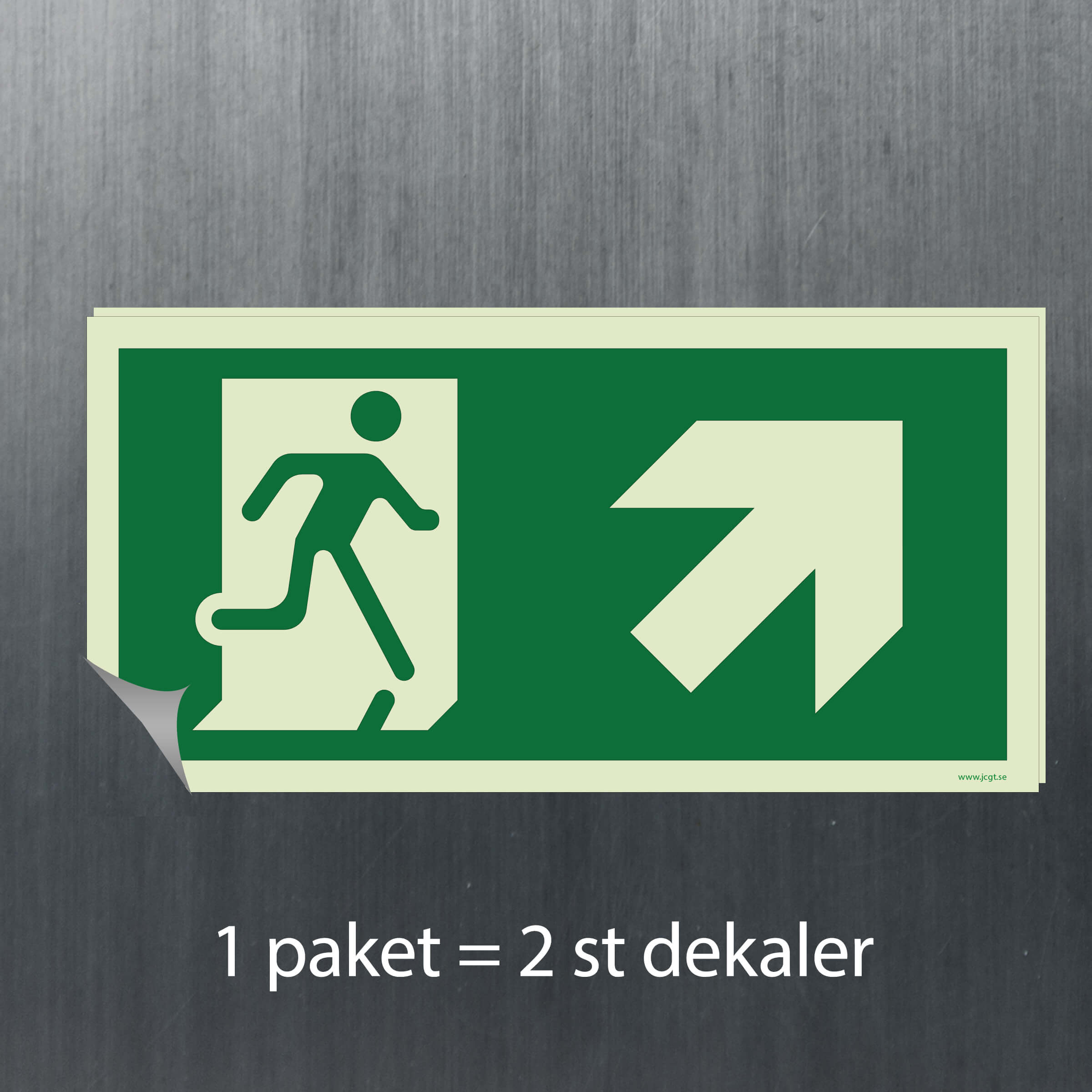 Utrymningsskylt Upp till höger