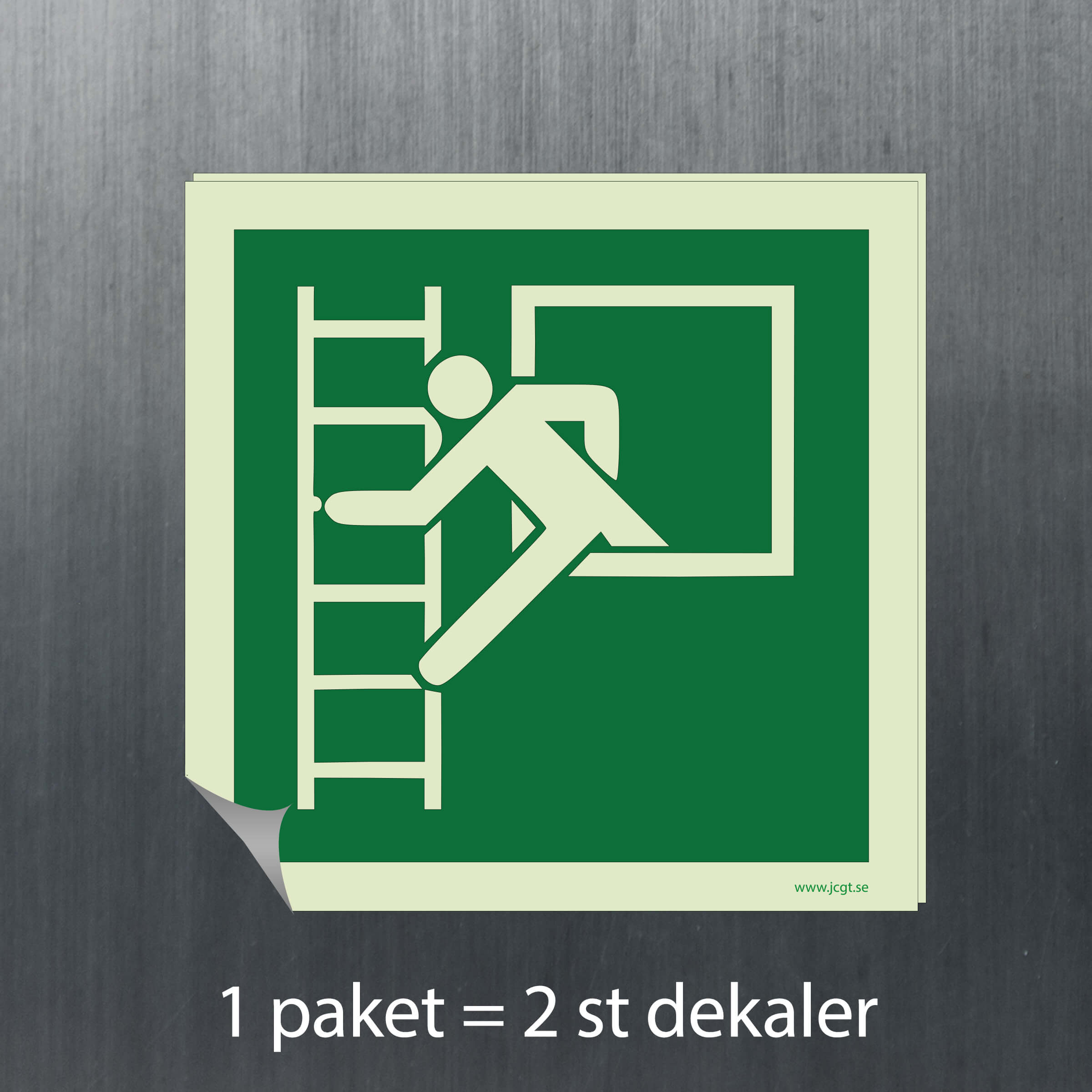 Utrymningsskylt Utrymningsfönster med stege som visar att här finns det en utrymningsväg. Efterlysande färger, välj mellan olika material och storlekar.