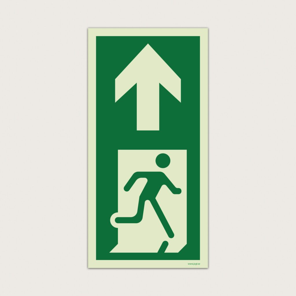 Utrymningsskylt Vertikal höger som visar att här finns en nödutgång.