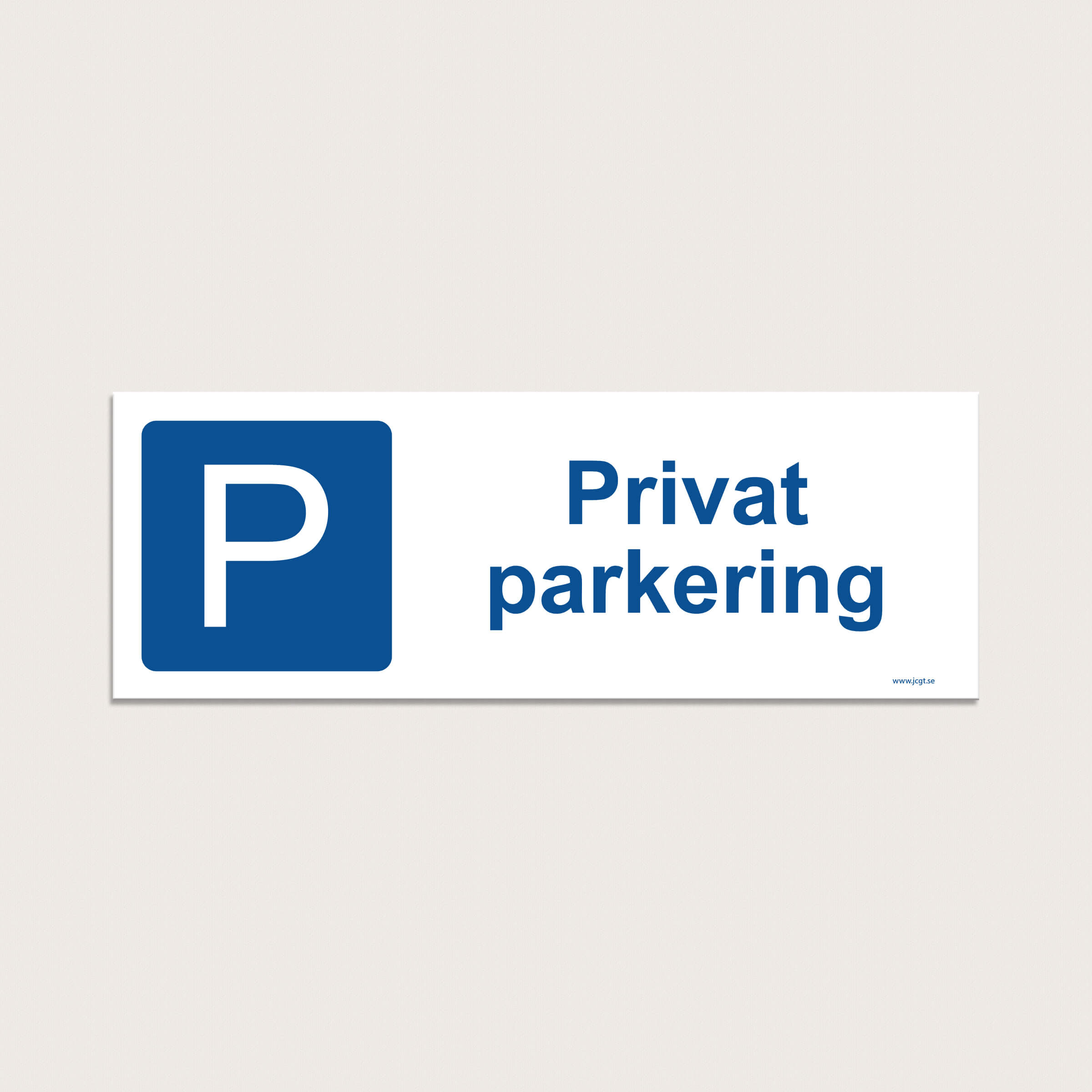 Storlek: 225 x 80 mm. P skylt Privat parkering till en enskild parkeringsplats.