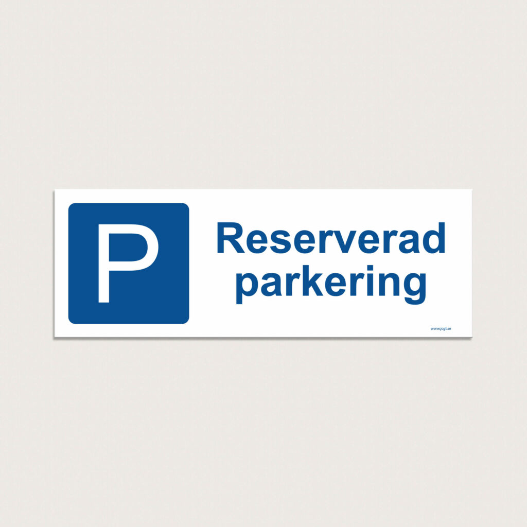 Storlek: 225 x 80 mm. P skylt Reserverad parkering till en enskild parkeringsplats.