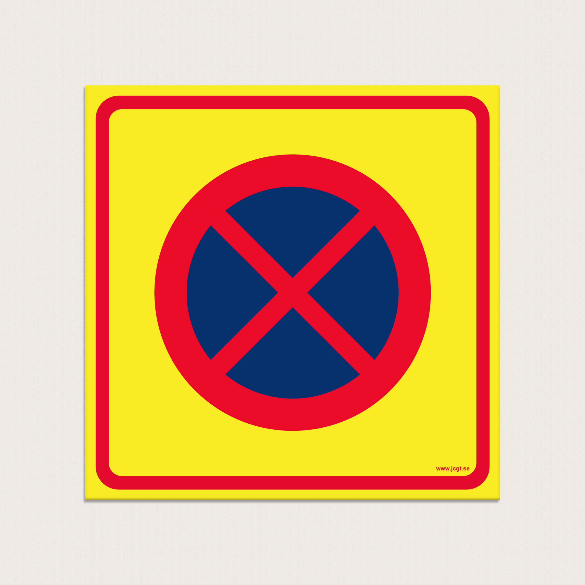 Storlek: 300 x 300 mm. Parkering förbjuden skylt för montage på vägg eller stolpe.