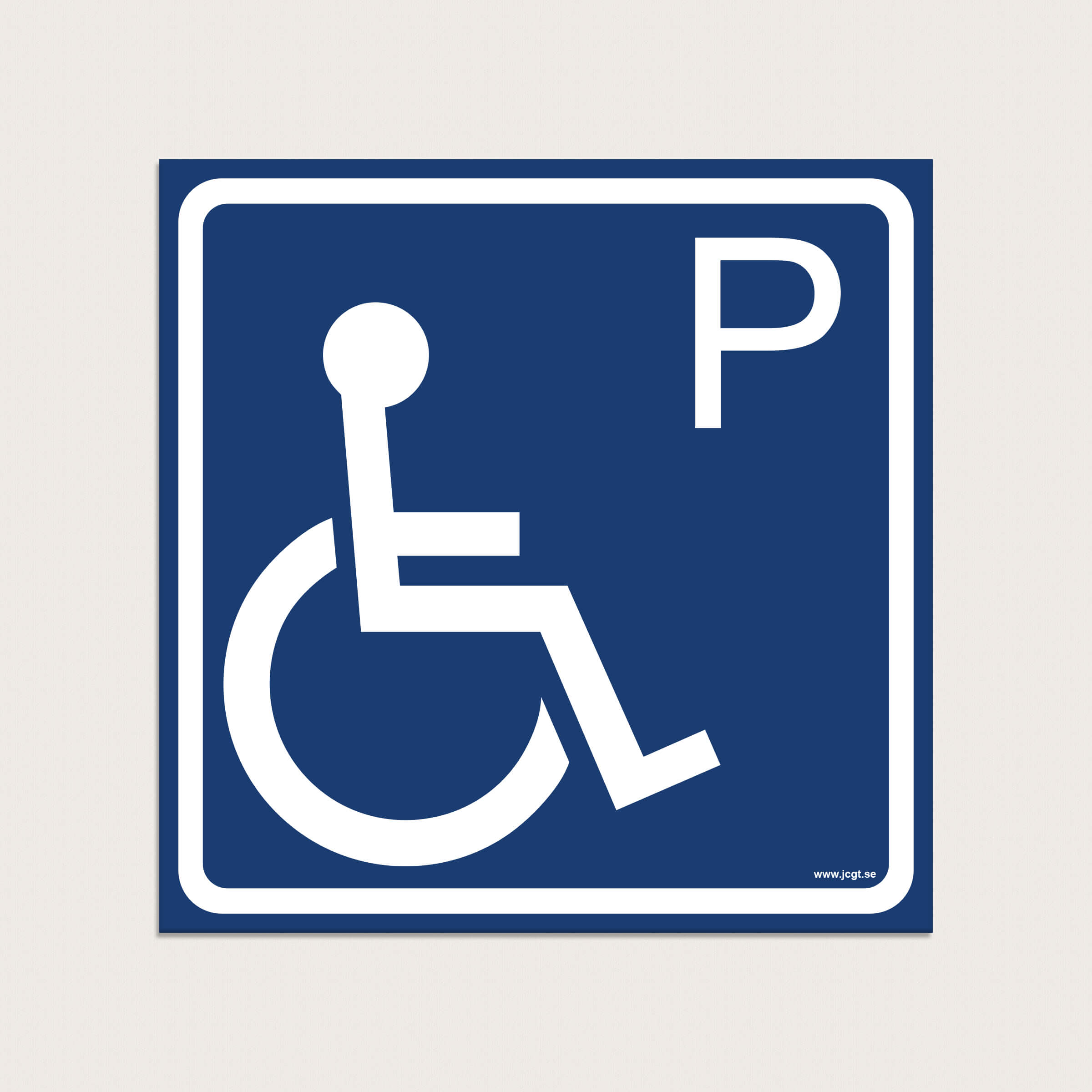 Storlek: 300 x 300 mm. Parkeringsskylt Handikapparkering för montage på vägg eller stolpe.