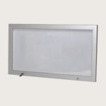 Låsbart Skyltskåp 108 x 59 cm där stommen är tillverkad av aluminium vilket gör att skåpet är av högkvalitet. Dörren är tillverkad av aluminium och 2 mm Polycarbonat. Ryggen är gjord av vitlackad stålplåt enkelt motivmontage med magneter. 2 stycken nycklar samt magneter ingår.