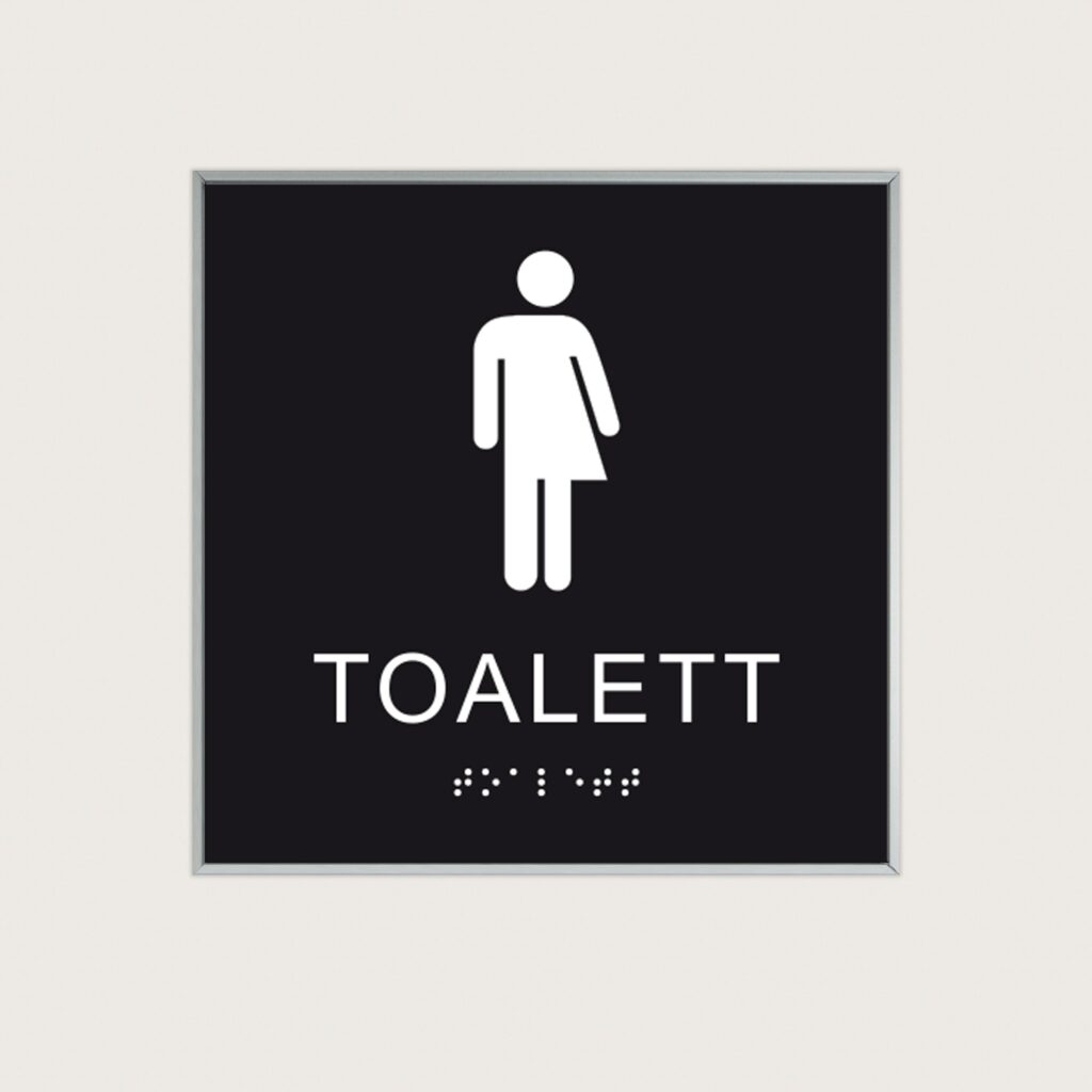 En skyltram i aluminium i storlek 150 x 150 mm, som är ett bra komplement till våra Taktila Piktogram.
