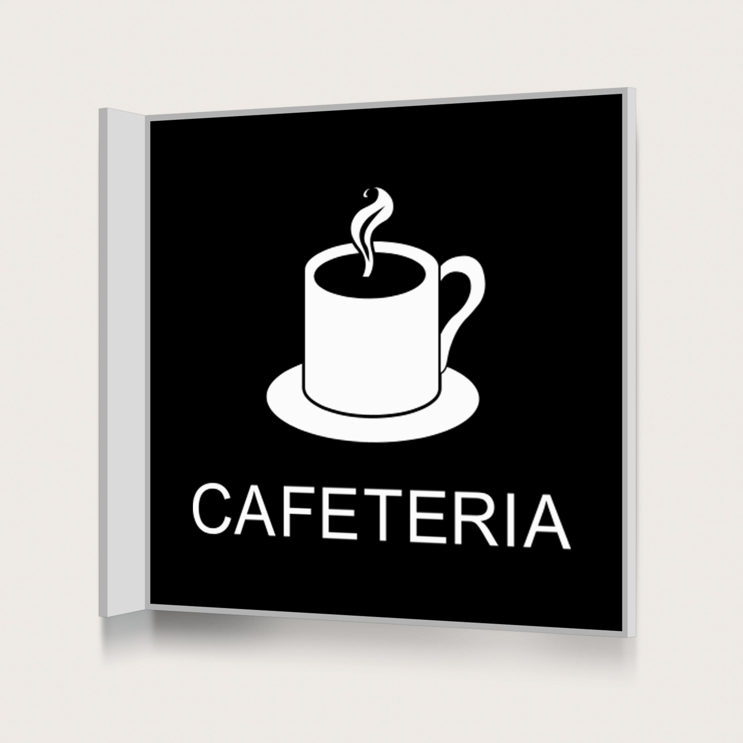 En dubbelsidig flaggskylt som är synlig från långt håll att sätta vid en cafeteria.