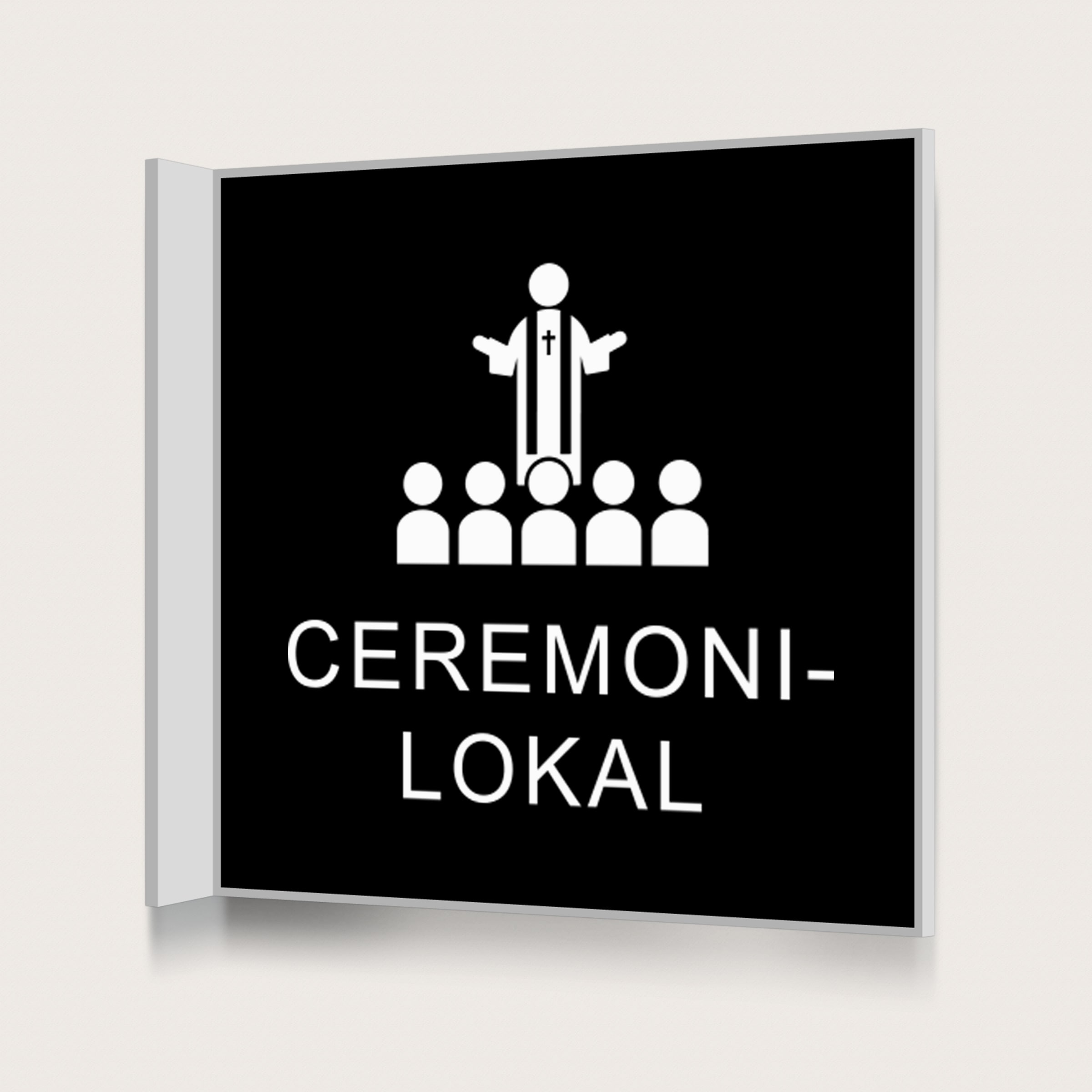 Vår flaggskylt för Ceremonilokal finns i ett flertal olika färgalternativ. Denna skylt passar bra in i kyrkans verksamheter så att det blir lätt för besökarna att hitta.