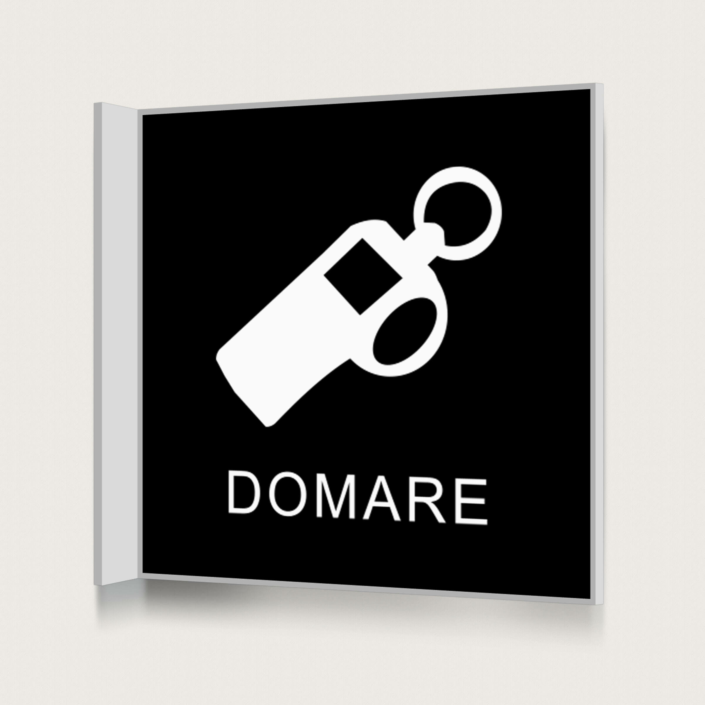 Vår flaggskylt för Domare finns i ett flertal olika färgalternativ. Denna skylt passar bra in på idrottsanläggningar och arenor där domaren har ett eget rum så man lätt kan hitta hen.