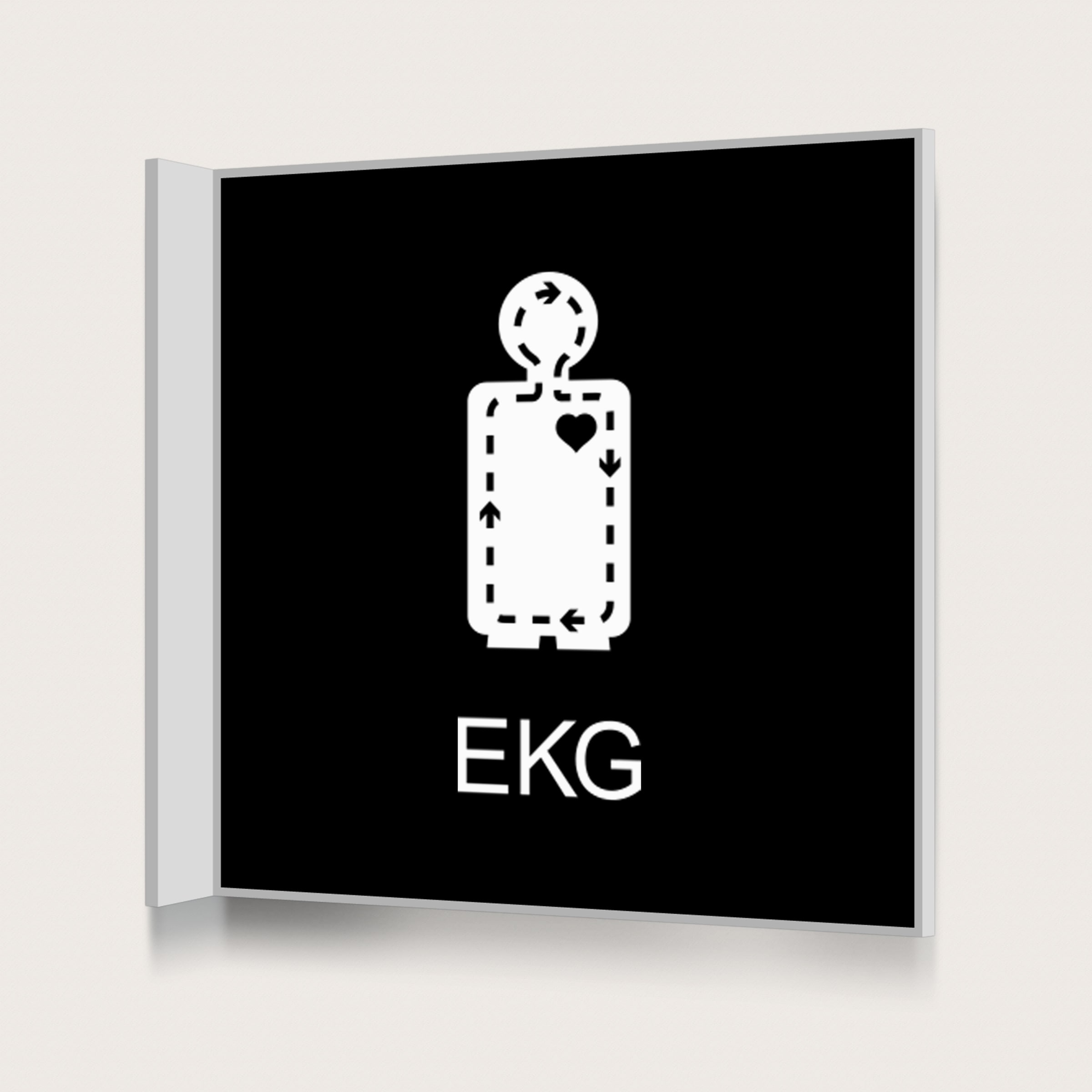 En flaggskylt som är synlig på långt håll och visar att här finns det EKG.