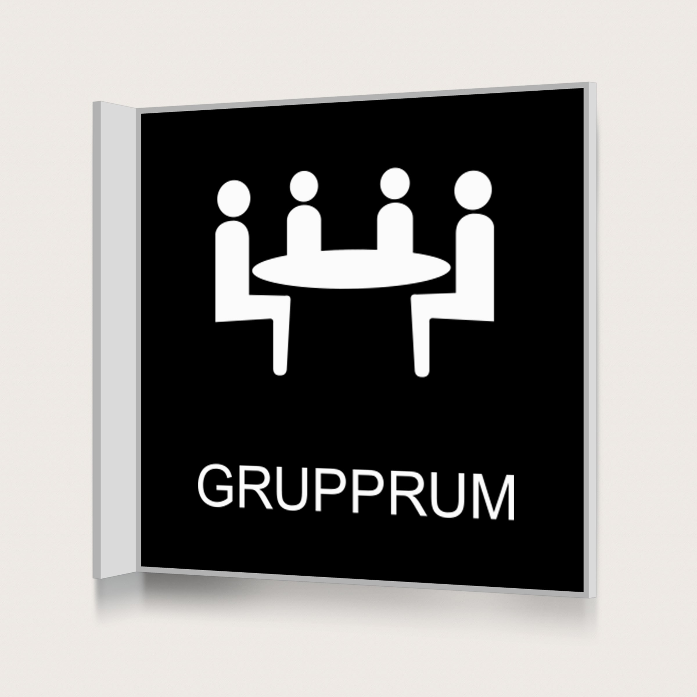 Vår flaggskylt för ett grupprum gör sig bra i skolor och bibliotek där det är vanligt att det finns tillgång till grupprum.