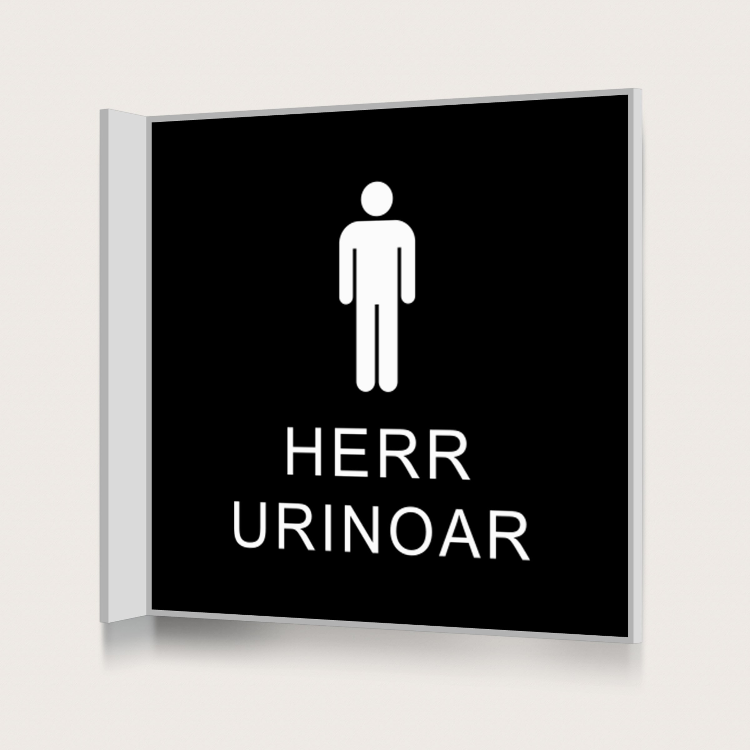 En dubbelsidig flaggskylt att sätta vid en Urinoar.