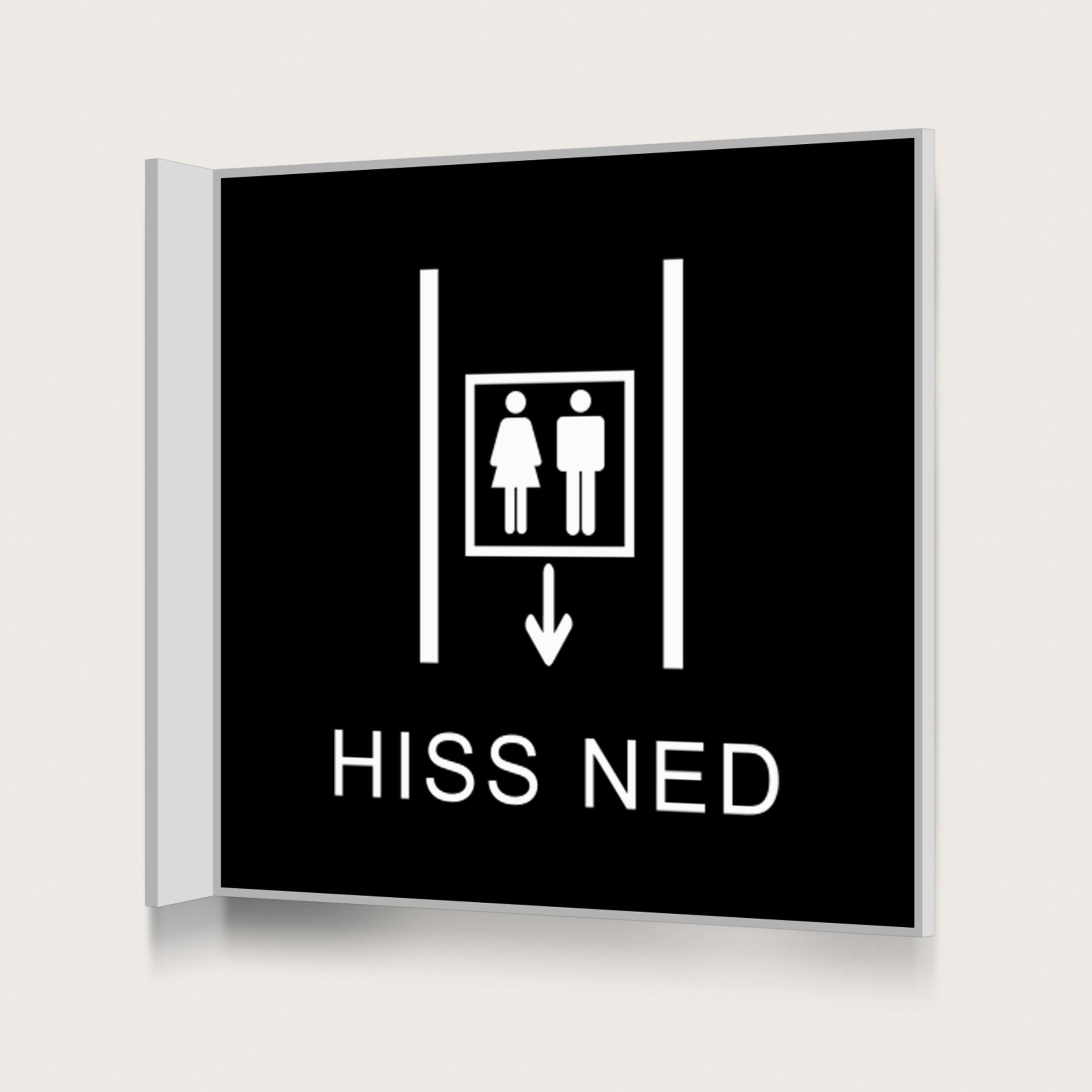 Flaggskylten Hiss Nedåt är en användbar skylt att sätta upp vid en hiss på högsta våningen i ett flervåningsbyggnad där hissen endast kan gå nedåt.