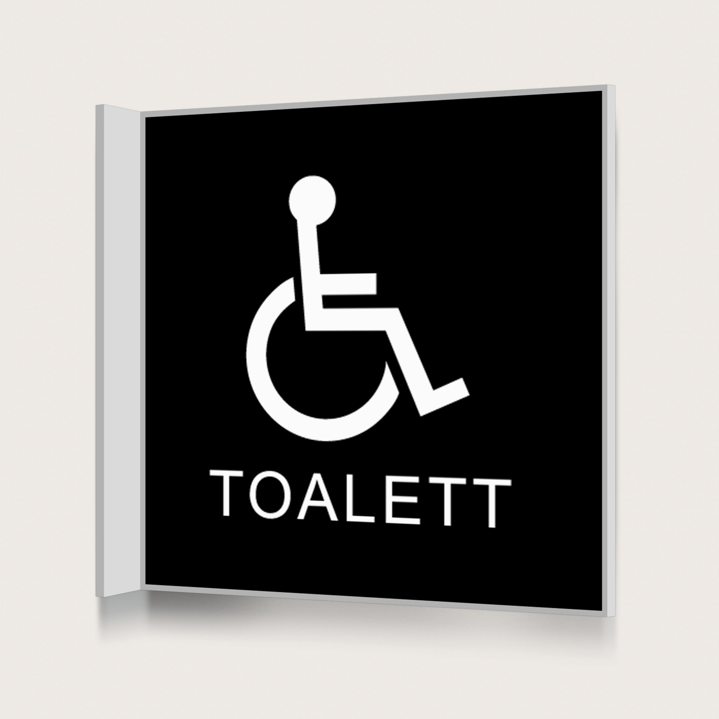En flaggskylt som visar att detta är en toalett som är handikapsanpassad.