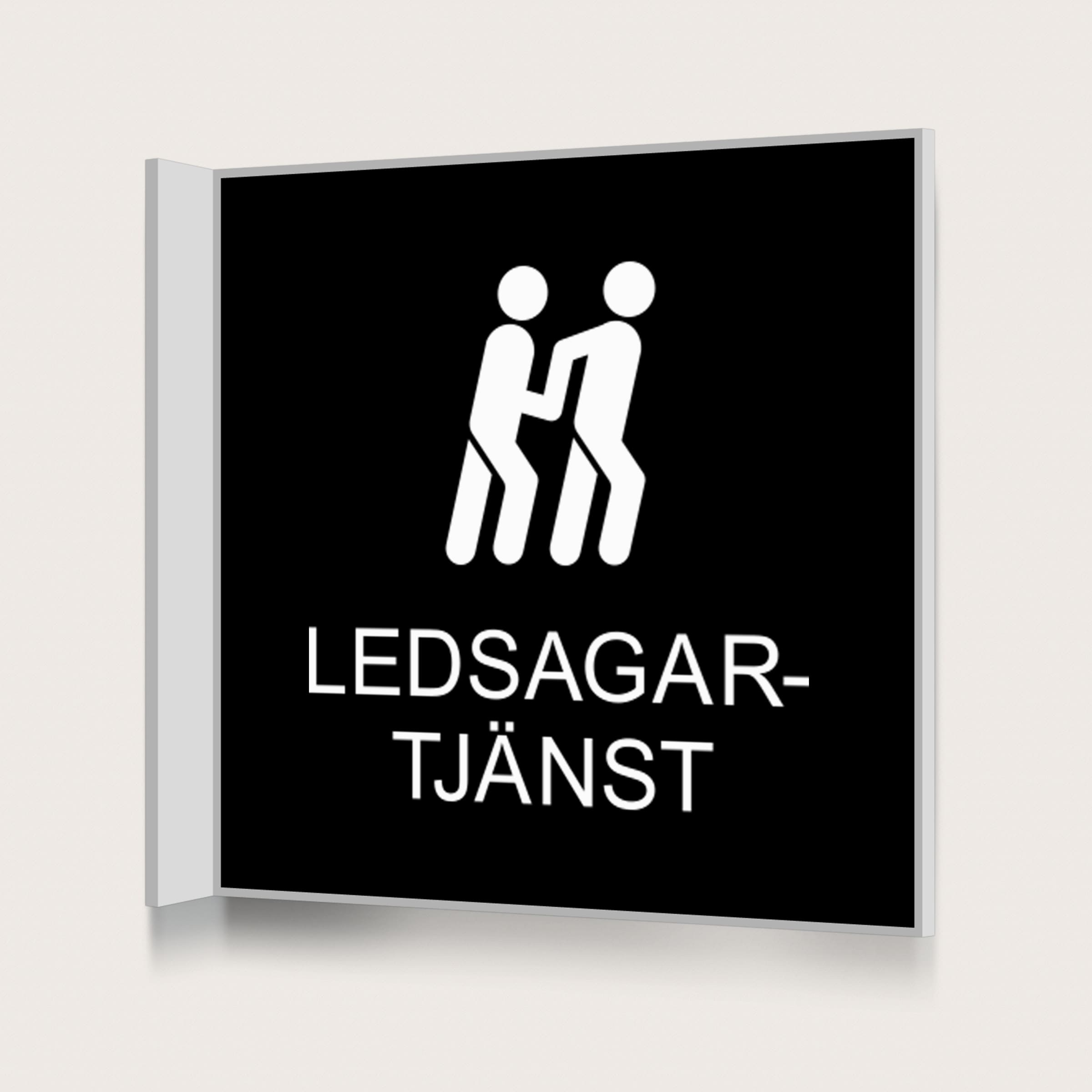 En flaggskylt som är synlig på långt håll med symbolen för ledsagartjänst. Välj mellan olika färger.