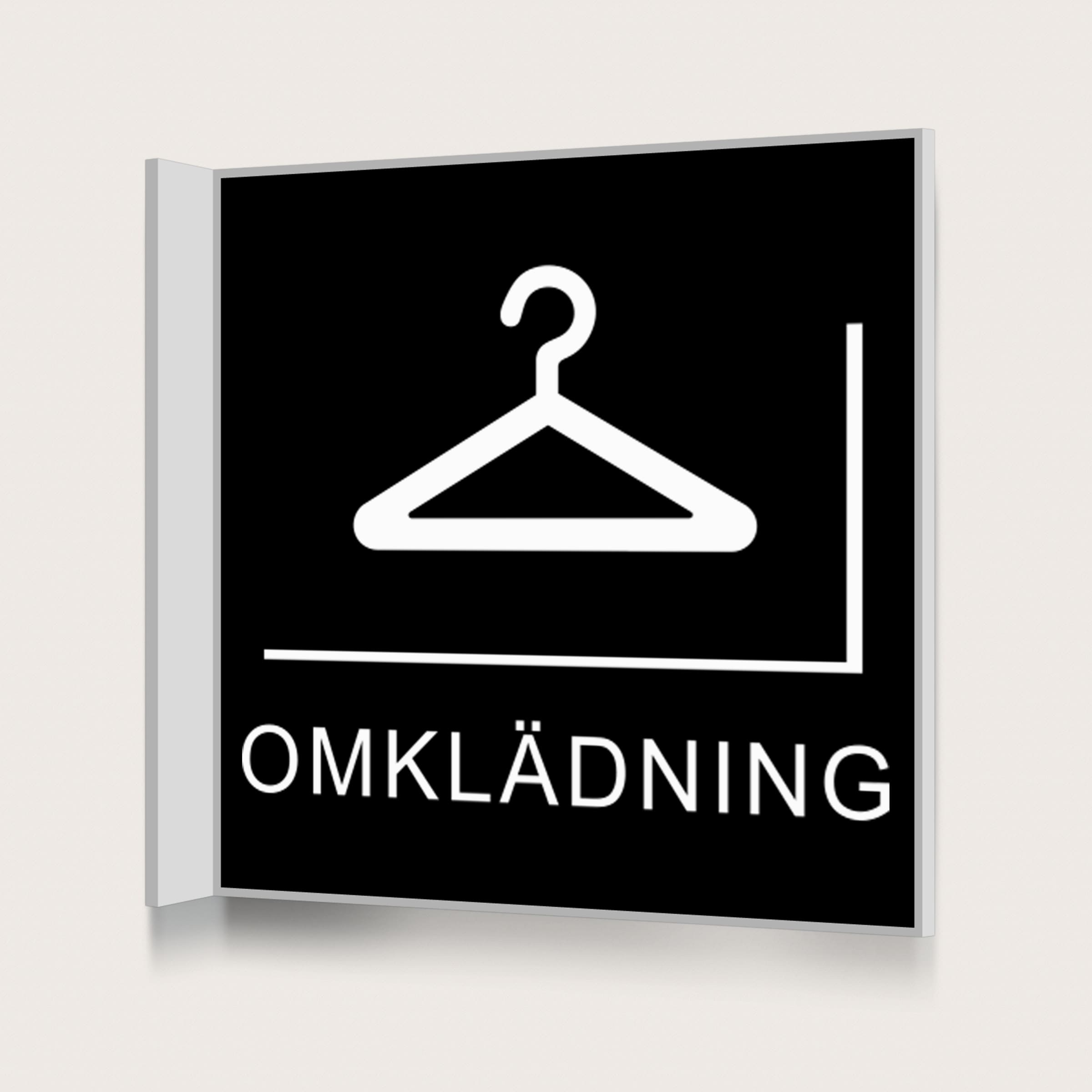 En flaggskylt som är synlig på långt håll och visar att här finns det ett rum för omklädning.