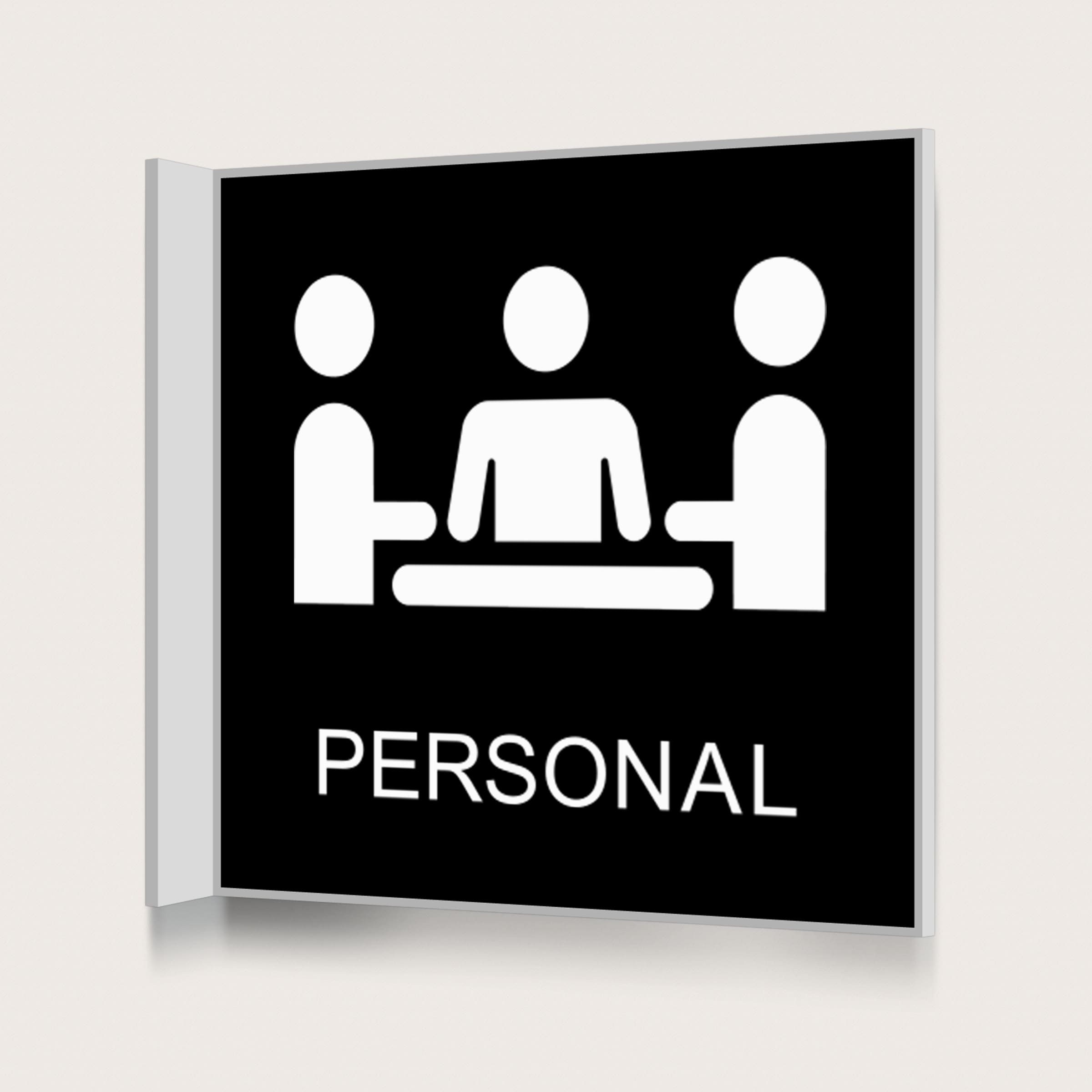 En flaggskylt att sätta vid ett rum endast avsett för personal. Finns i flera olika färgalternativ.