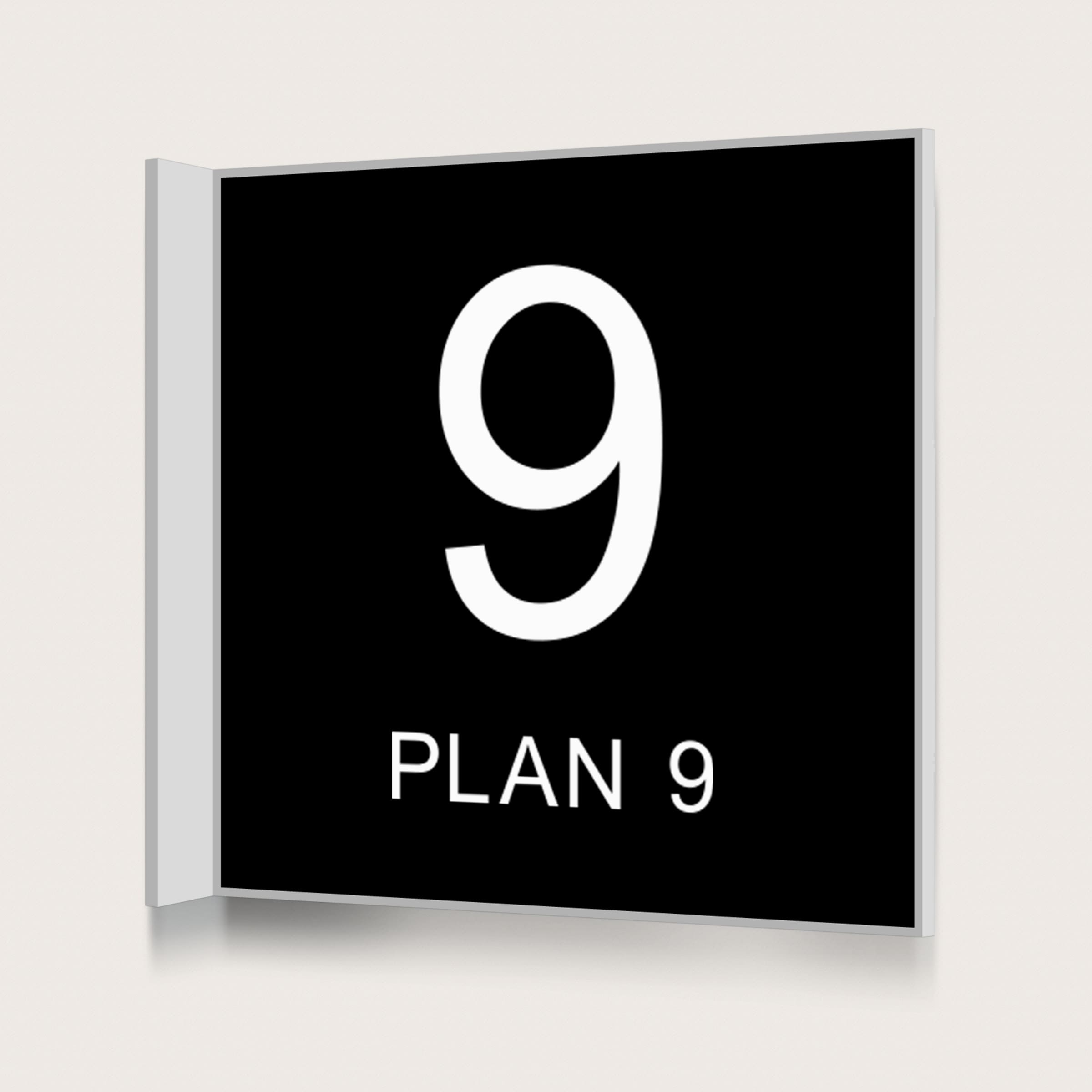 Vår flaggskylt för plan 9 passar bra i lägenhetsbyggnader, kontorskomplex och skolor. Detta för att göra det lätt för besökare att veta vilket plan de befinner sig på.
