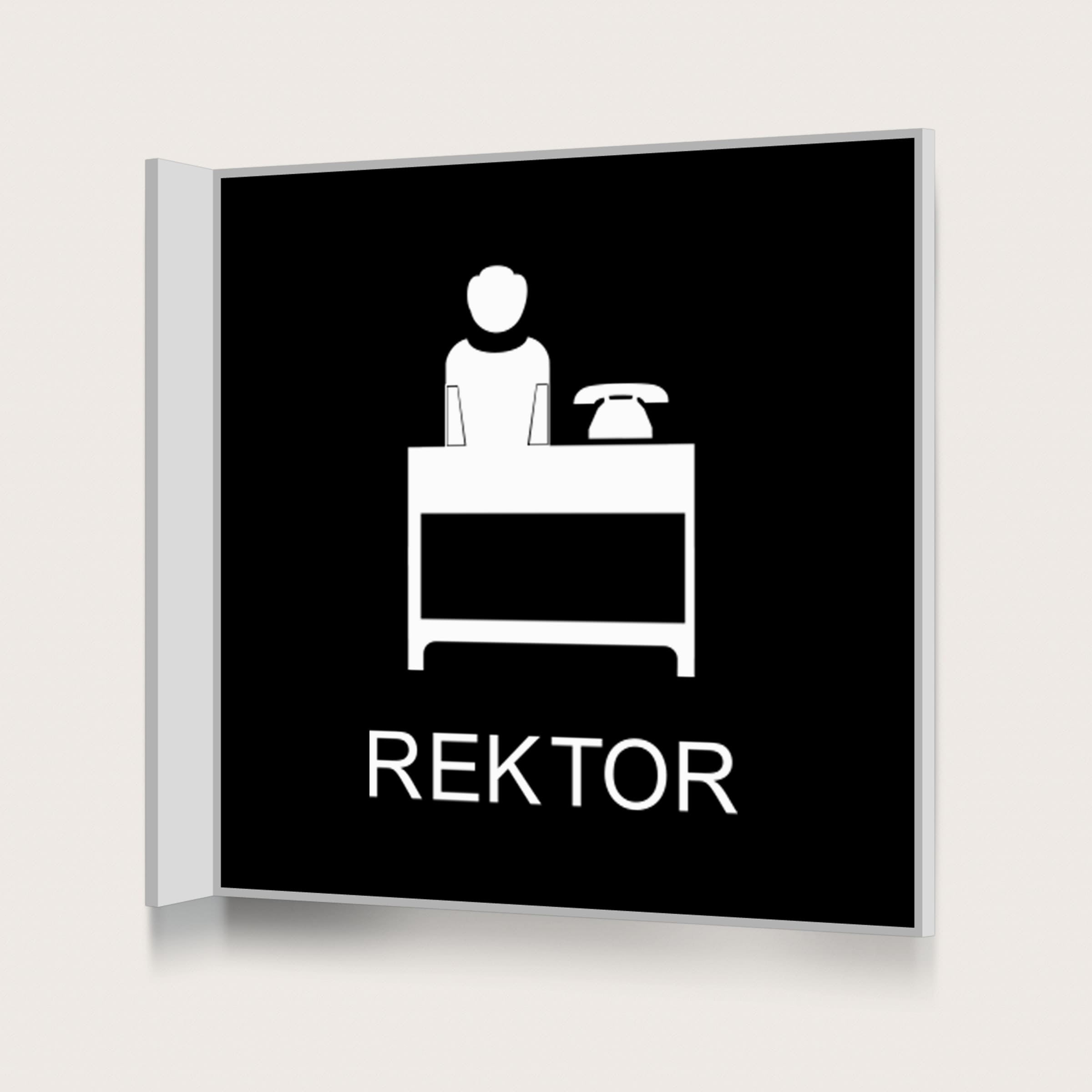 Vår flaggskylt för Rektor passar väl in att montera upp utanför rektorns kontor i skolor, så det blir lätt för elever och personal att hitta.
