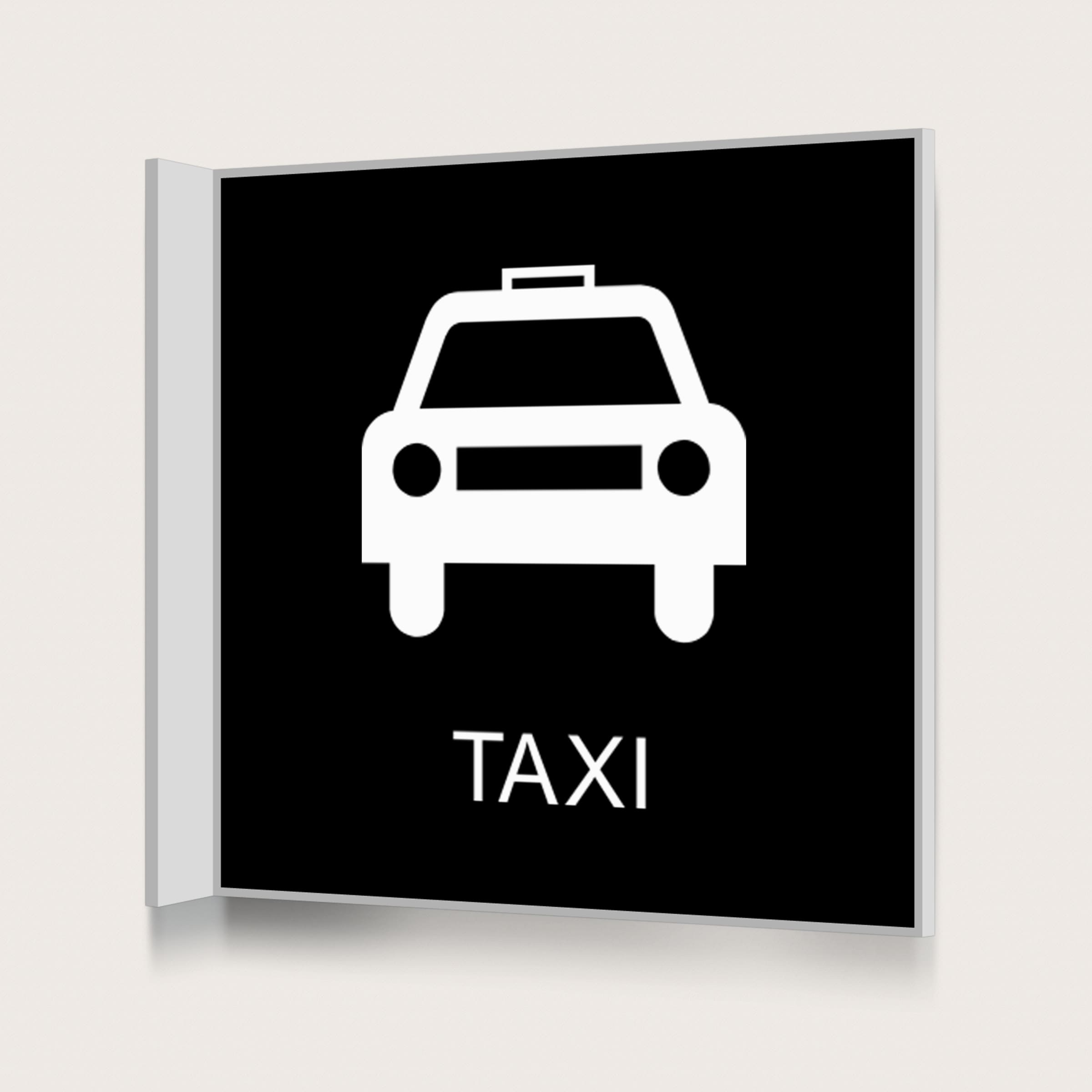 Flaggskylten för taxi är en bra taxiskylt att sätta upp vid olika resecentrum eller utanför hotell där det oftast finns tillgång till en taxi.