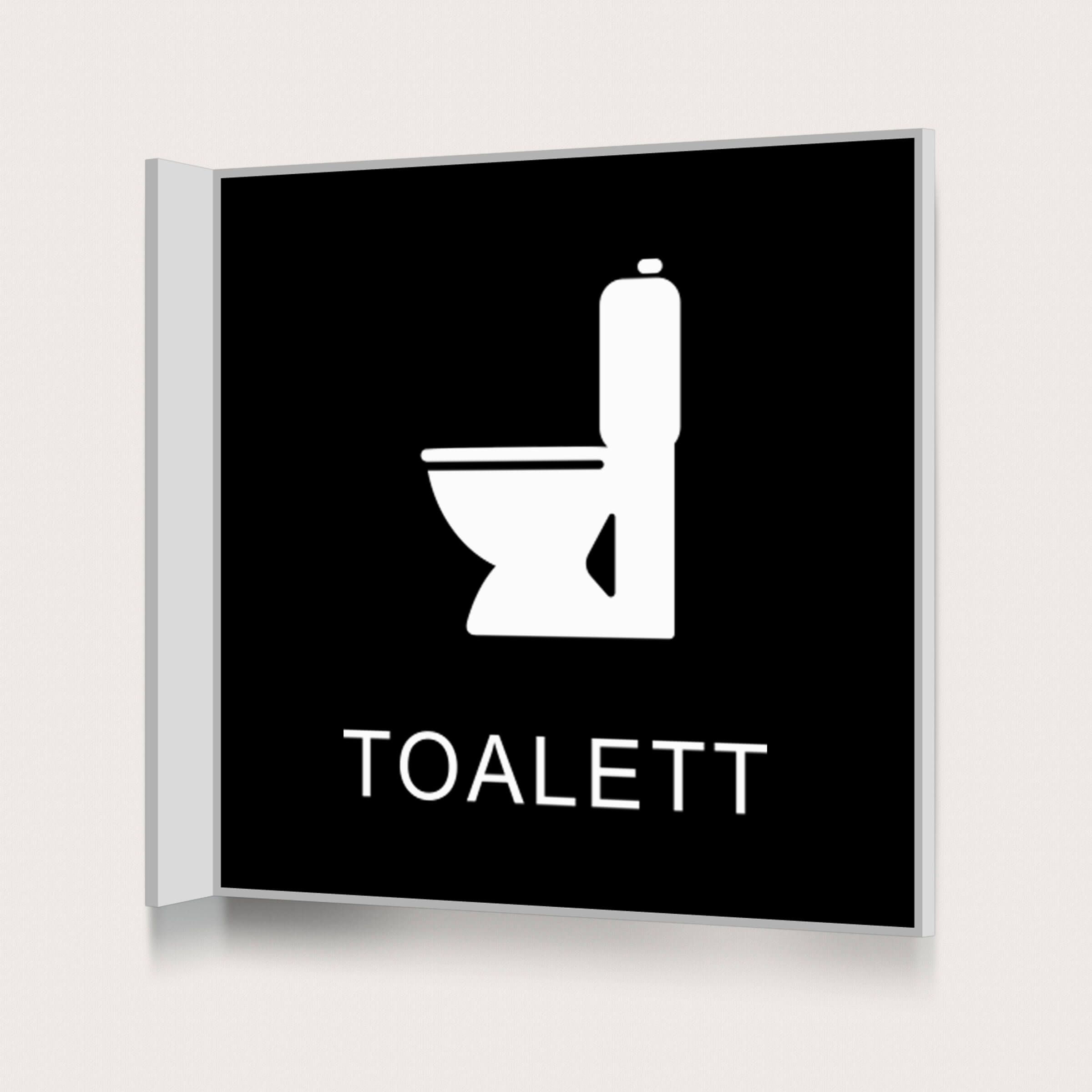Denna flaggskylt för Toalett en bra skylt som passar bra att sätta utanför toaletter i t. ex köpcentrum, sjukhus eller skolor.