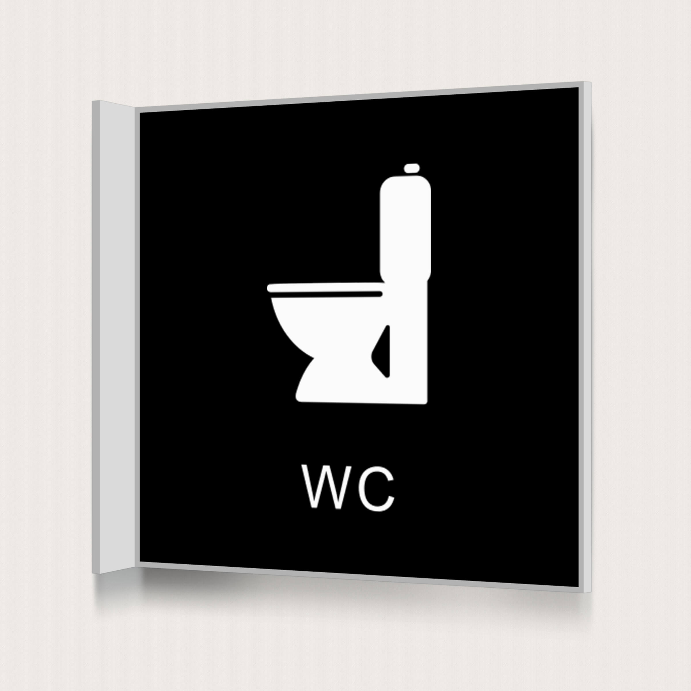 Flaggskylt WC 150 x 150 mm mm som visar att här finns det en unisex toalett.