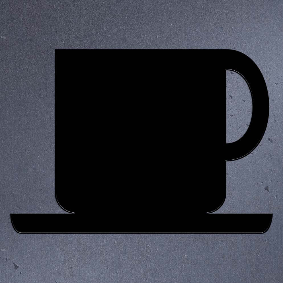 Ett utskuret piktogram i trä att sätta utanför en cafeteria. Finns att välja mellan ett flertal olika färger.