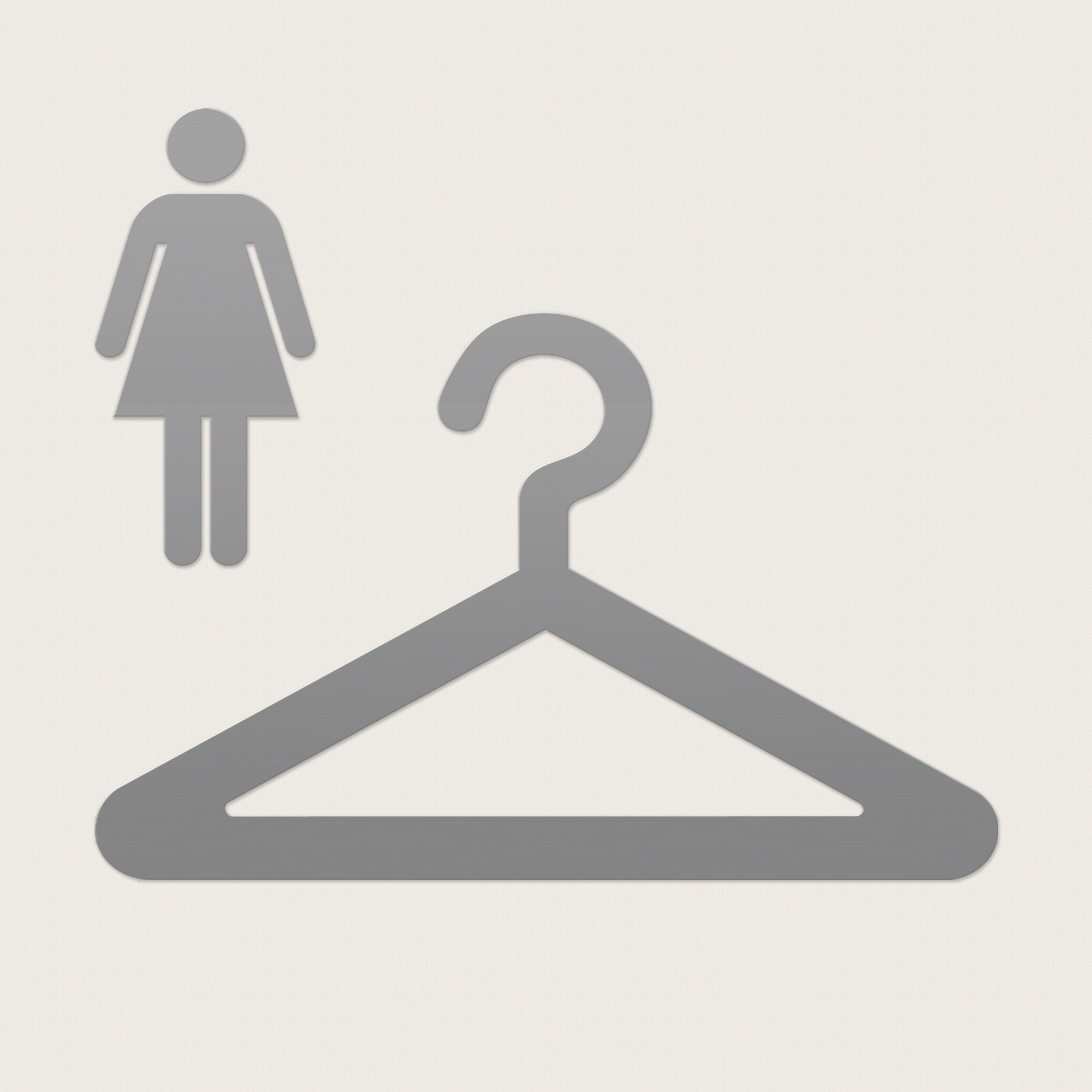 Konturskuret Piktogram Omklädningsrum Damer i Aluminium. En utskuren symbol att sätta vid dörren till damernas omklädningsrum.