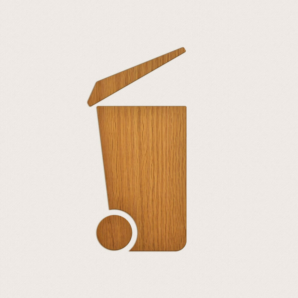 Ett utskuret piktogram i trä för soprum. Välj mellan symbol höjden 200 mm och 300 mm.