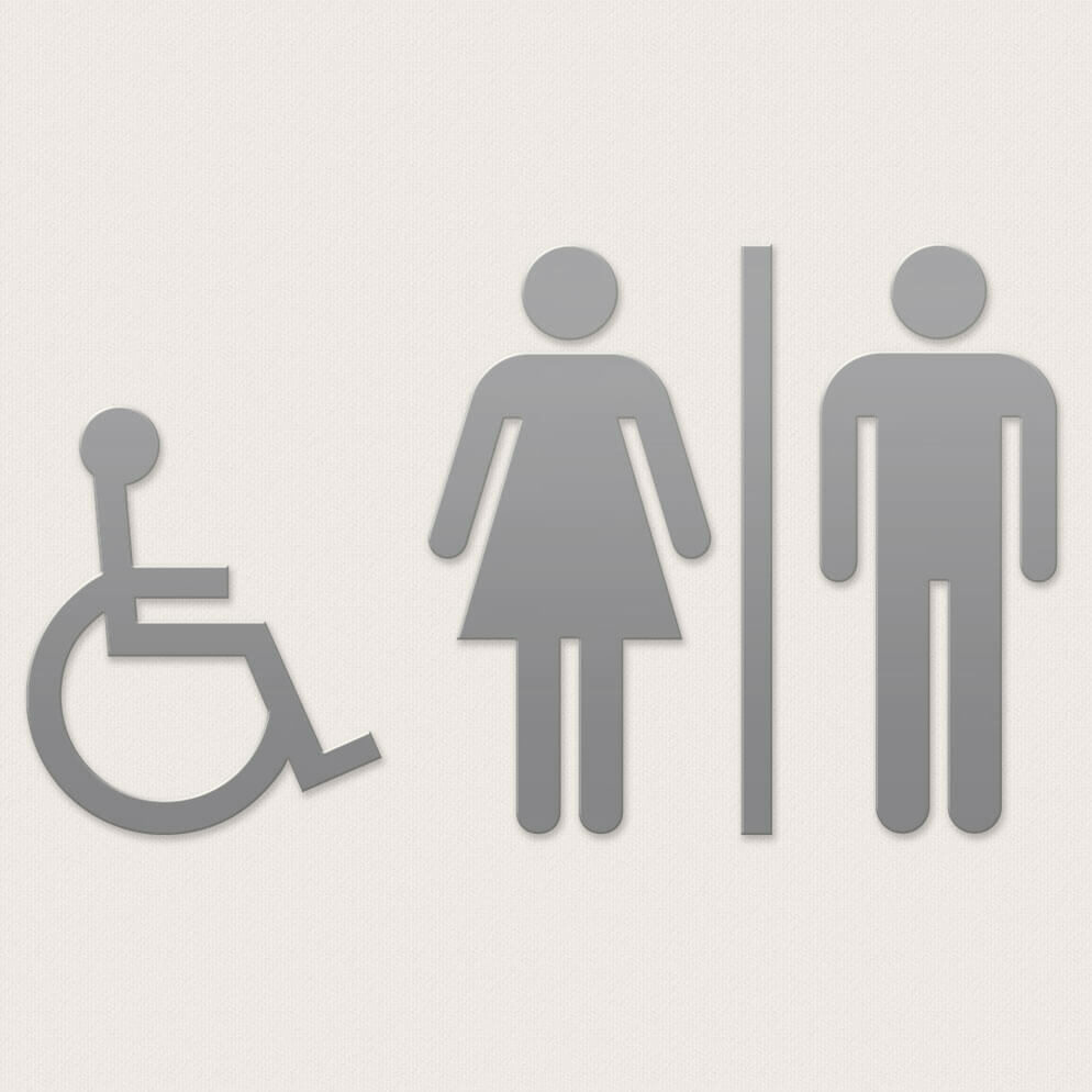Konturskuret Piktogram Toalett och RWC i Aluminium