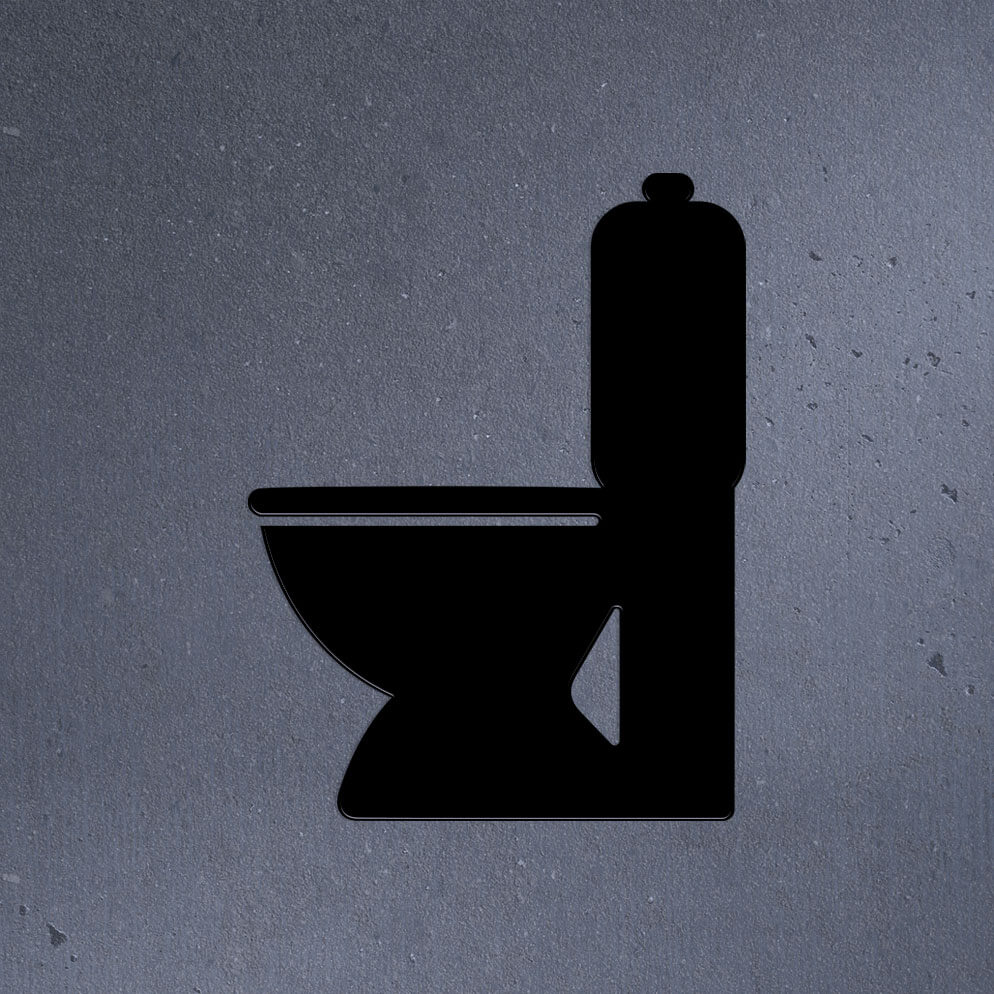 En utskuren toalettstol i plast som informerar om att det finns en toalett. Finns i olika färger.