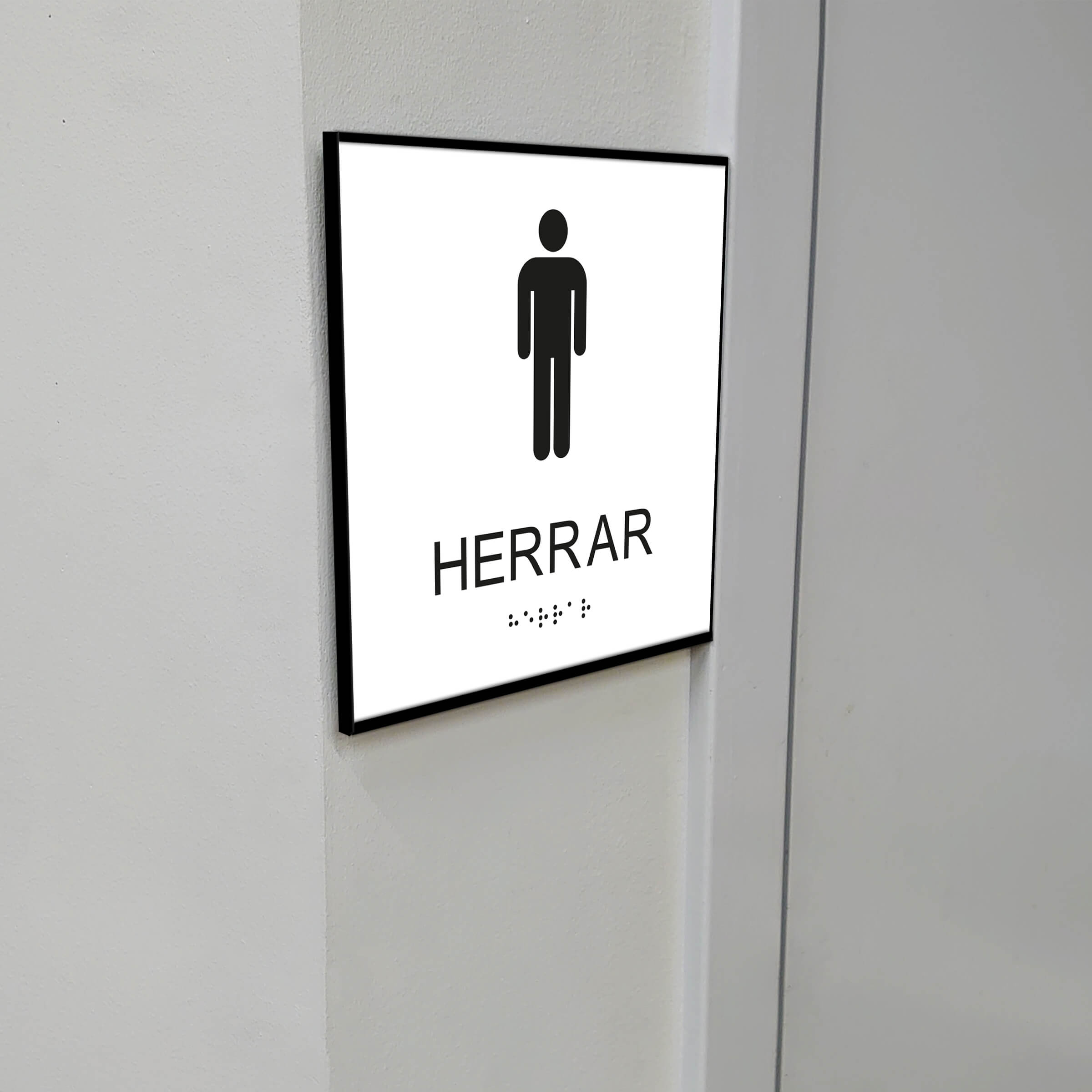 En taktil skylt som med text och symbol i relief och med punktskrift underlättar för alla människor att ta del av informationen. Taktila piktogram är ett bra och beprövat hjälpmedel som öppnar upp samhället och gör det mer tillgängligt för alla. Med den taktila skylten tillkommer här även en ram. En ram till skylten ger den en extra touch av stil och elegans och den förfular inte rummet. Ramen tejpas enkelt upp på er vägg och önskar ni skruvas fast den så är det också möjligt. När ramen sitter på plats så tejpas det taktila piktogrammet fast i ramen.