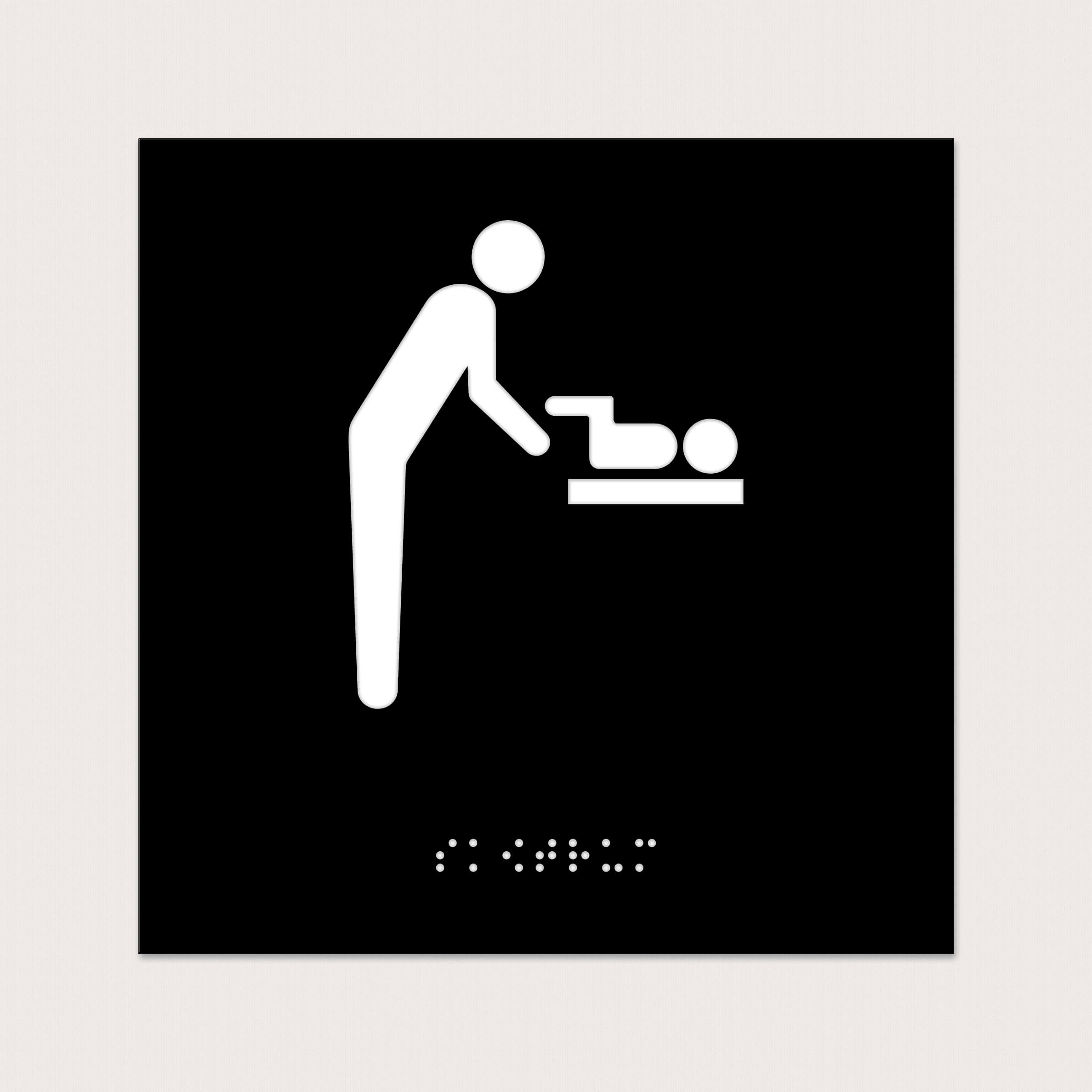 En taktil skylt för ett skötrum. Finns att välja med punktskrift.