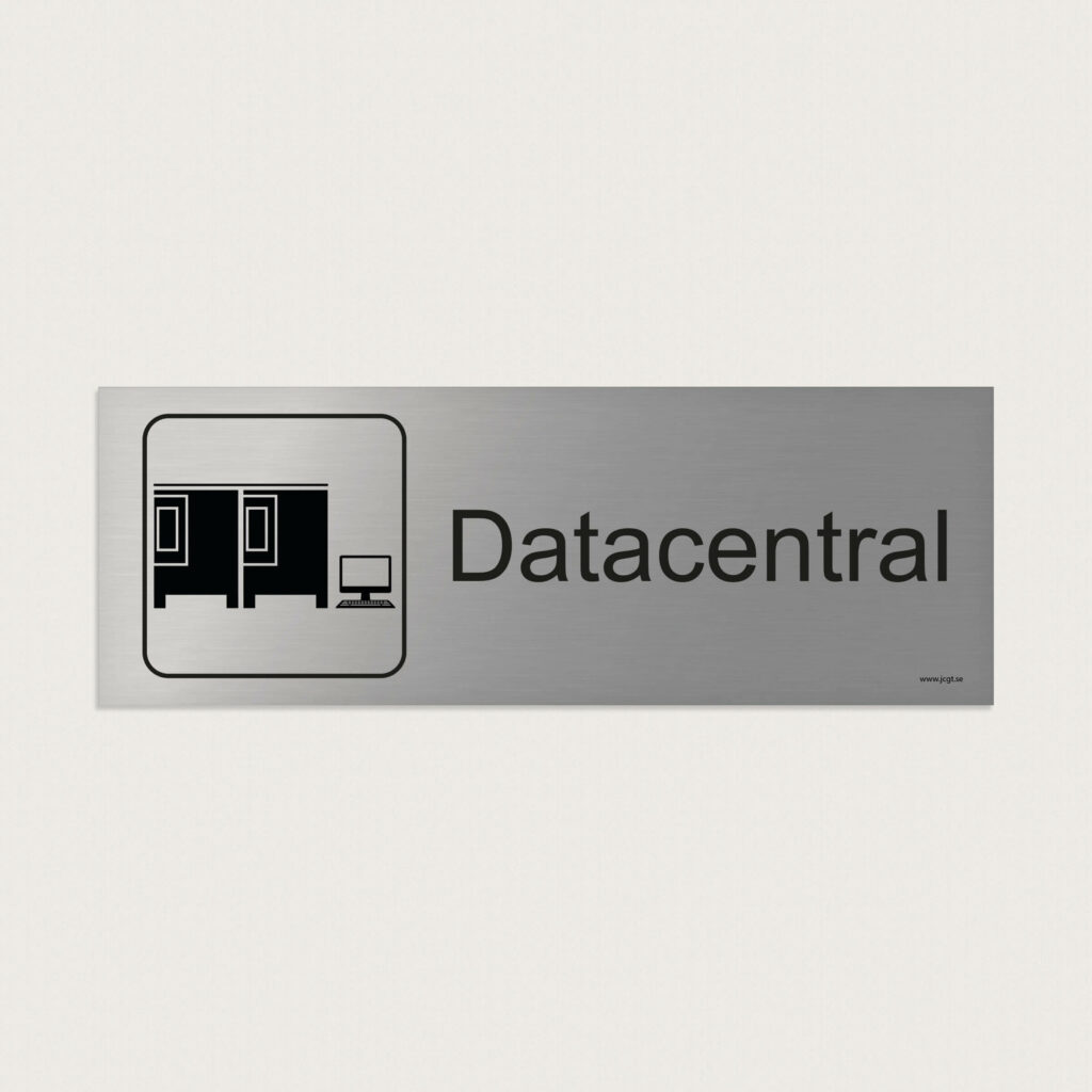 En trivsel- & ordningsskylt med symbol och text Datacentral som underlättar för personerna som skall jobba där att hitta dit.