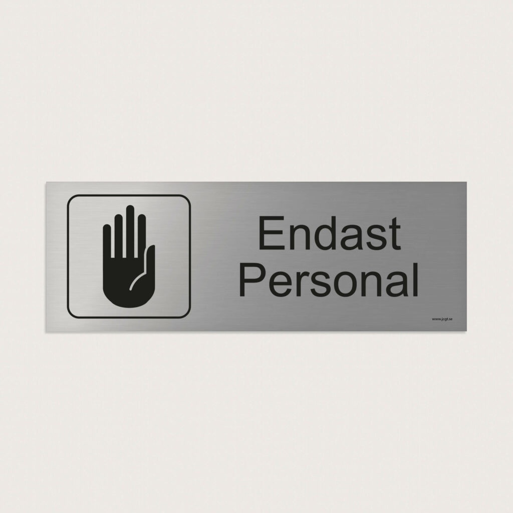 En endast personal skylt att sätta vid en dörr eller utrymme där endast personal är tillåten att befinna sig.