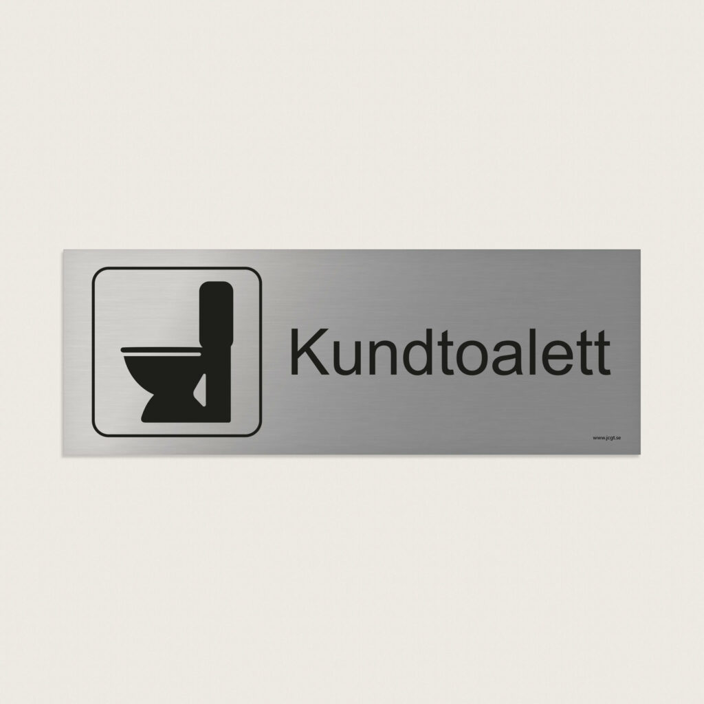 En trivsel- / ordningsskylt med toalettsymbol och texten kundtoalett som tydligt visar för kunderna i butiken eller affären att hitta rätt.