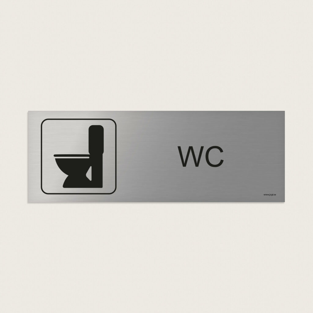 En toalettskylt som är universell med symbolen av en toalettstol och texten WC.