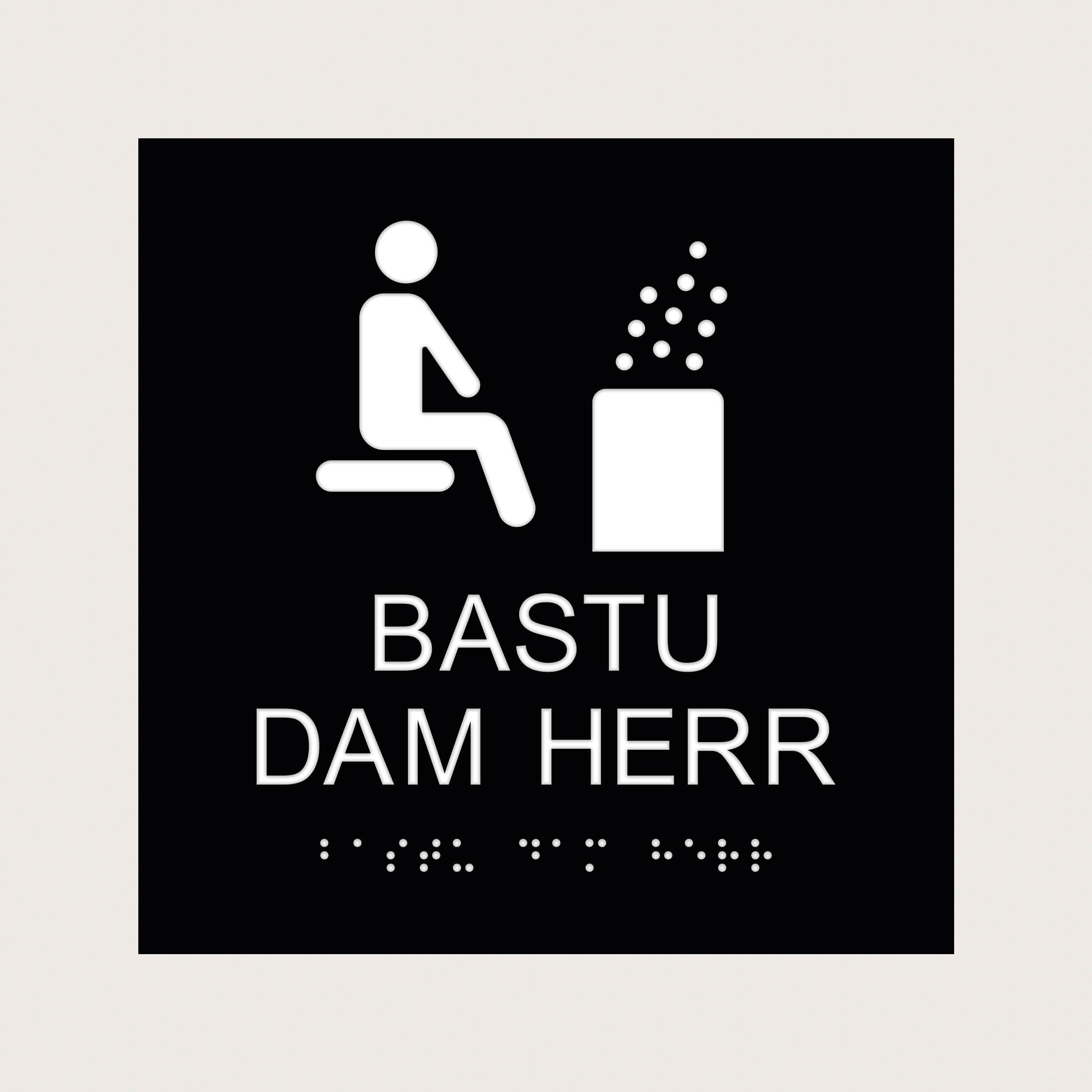 Ett taktilt piktogram för bastu både för dam och herr. SundaHus logga