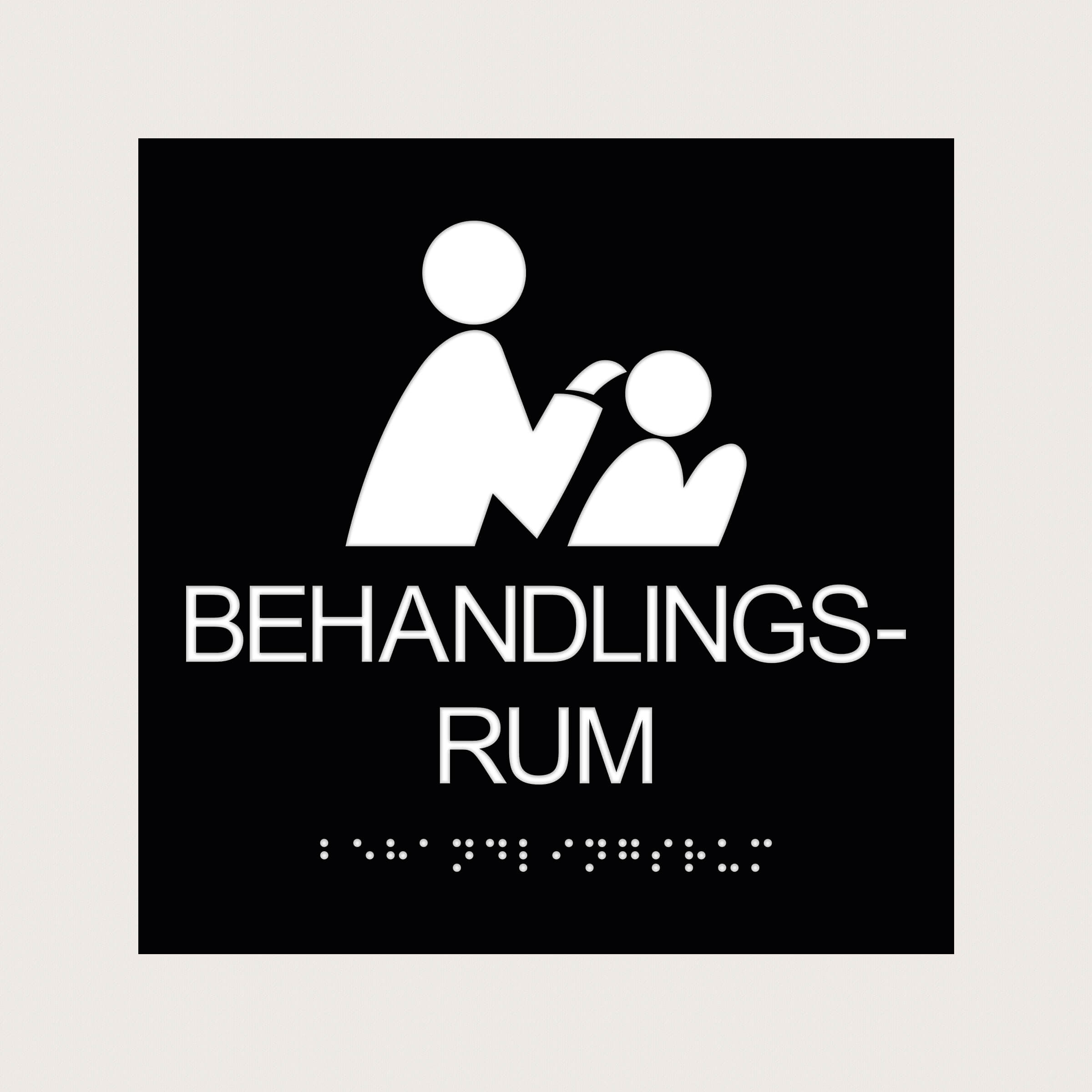 En taktil skylt som kan vara bra för att märka upp olika behandlingsrum inom vården.