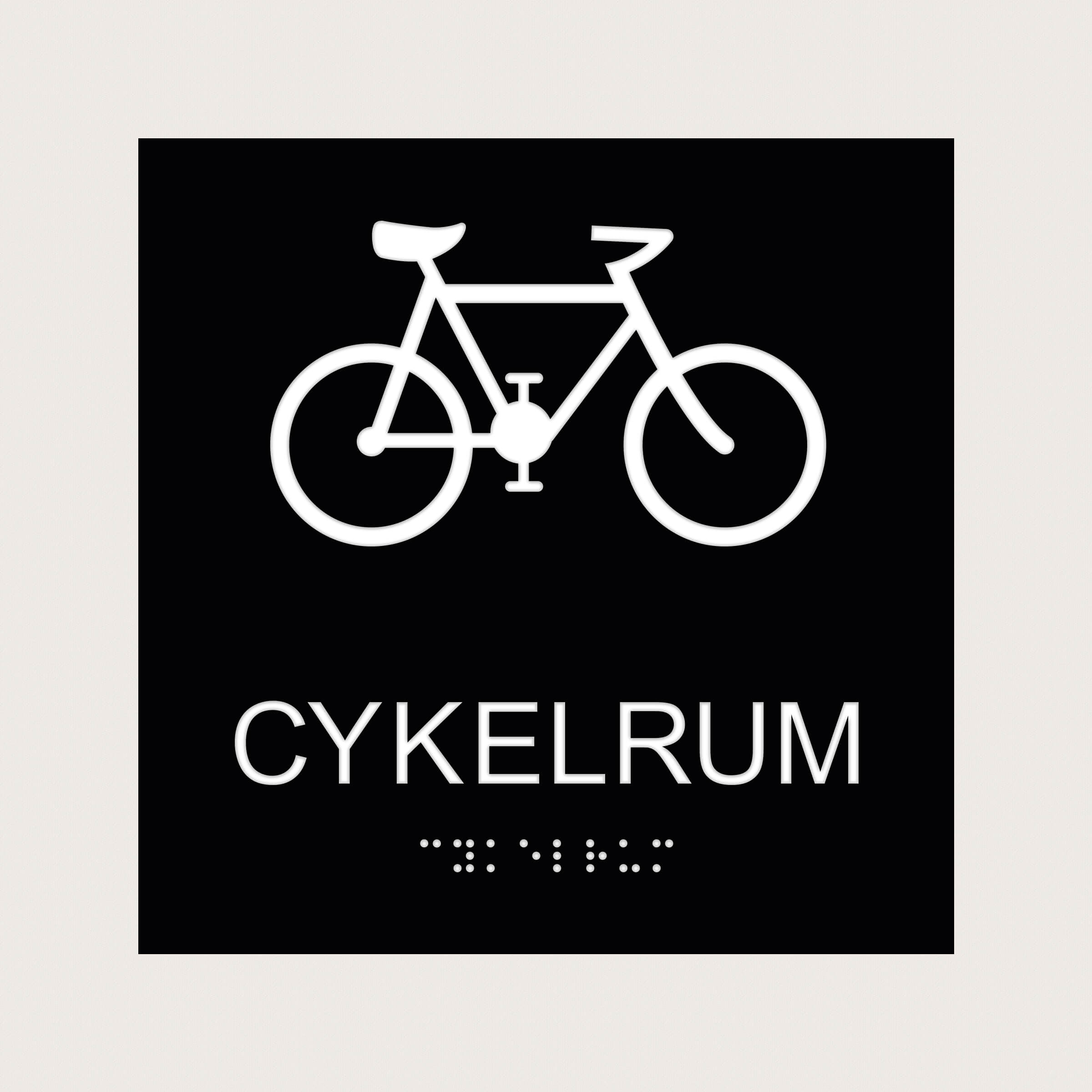 Ett taktilt piktogram med text och symbol att sätta vid ett cykelrum. Välj mellan olika färger och storlekar.