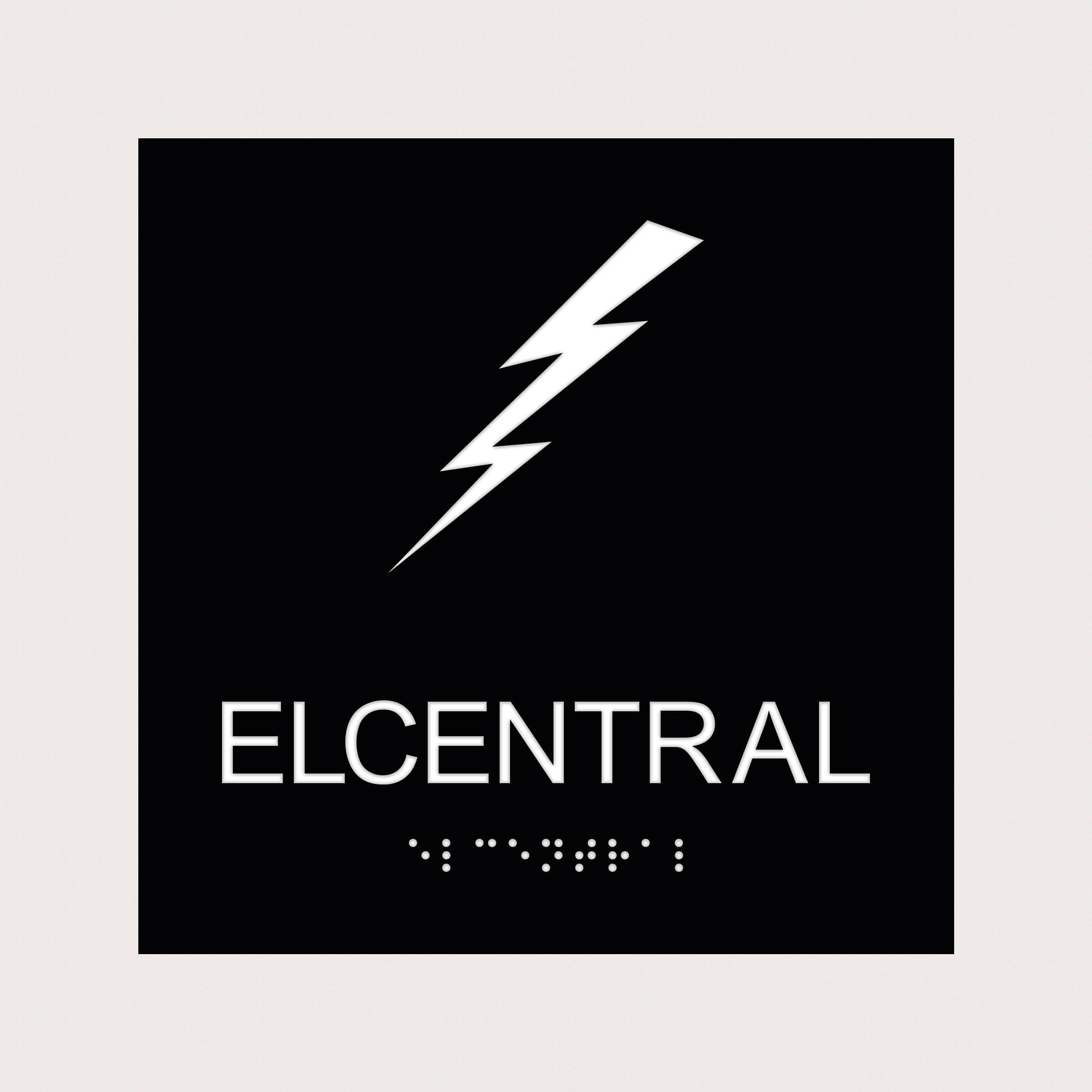Taktilt piktogram med taktil text och punktskrift för Elcentral.
