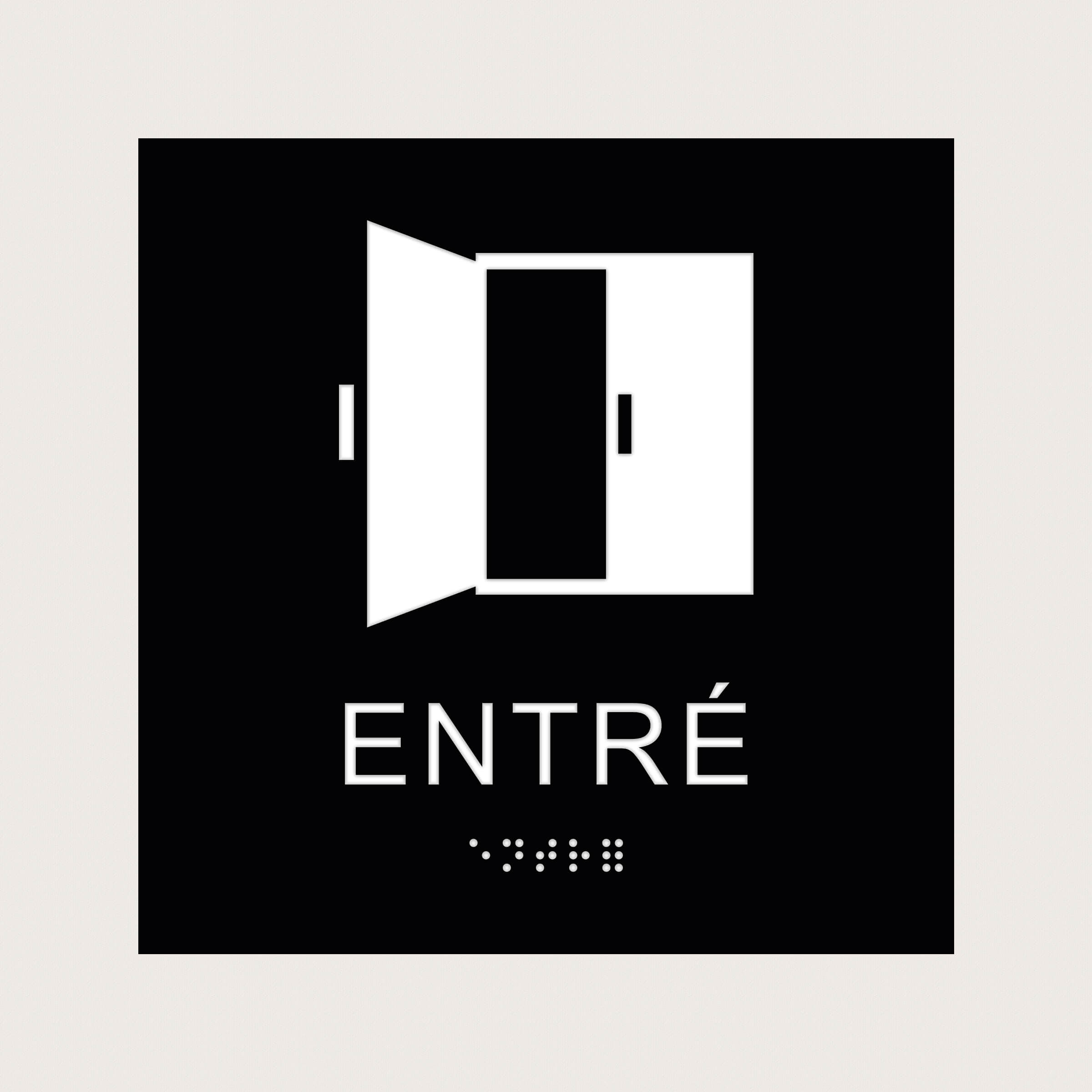 En taktil skylt att fästa vid olika entréer för att göra det lätt att hitta.