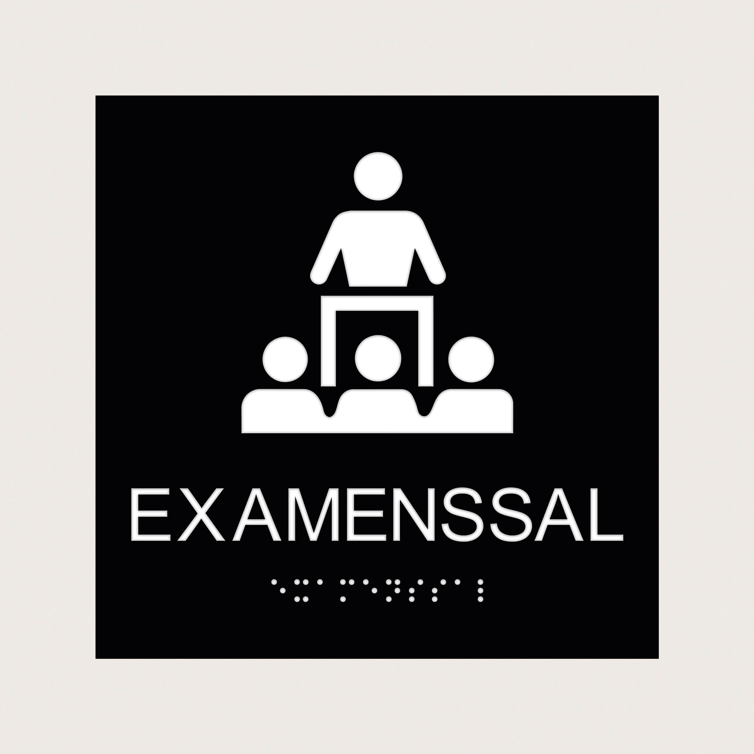 En taktil skylt att sätta utanför examenssalar på t ex universitet och högskolor för att göra det lätt för studenterna att hitta.