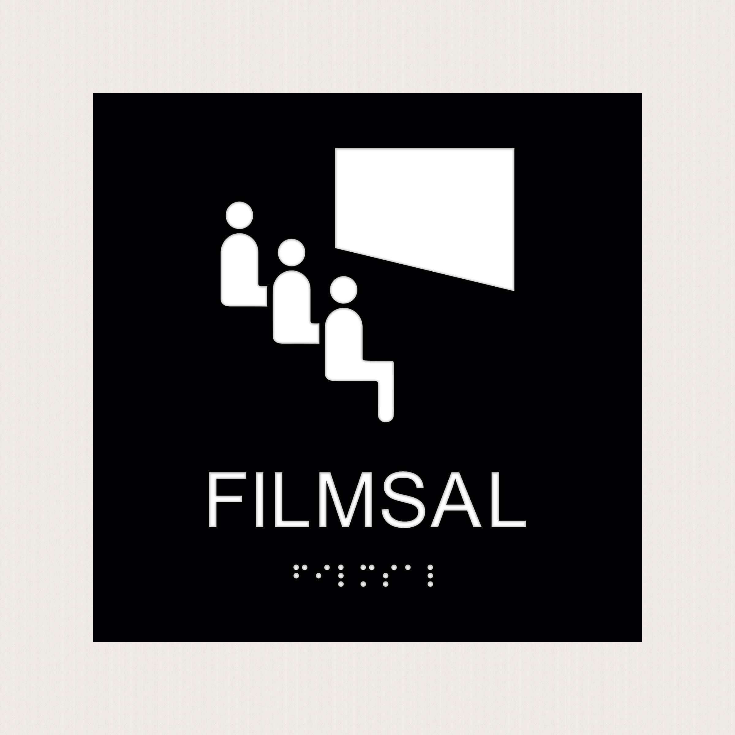 En taktil skylt för Filmsal som kan användas för skolor och universitet.